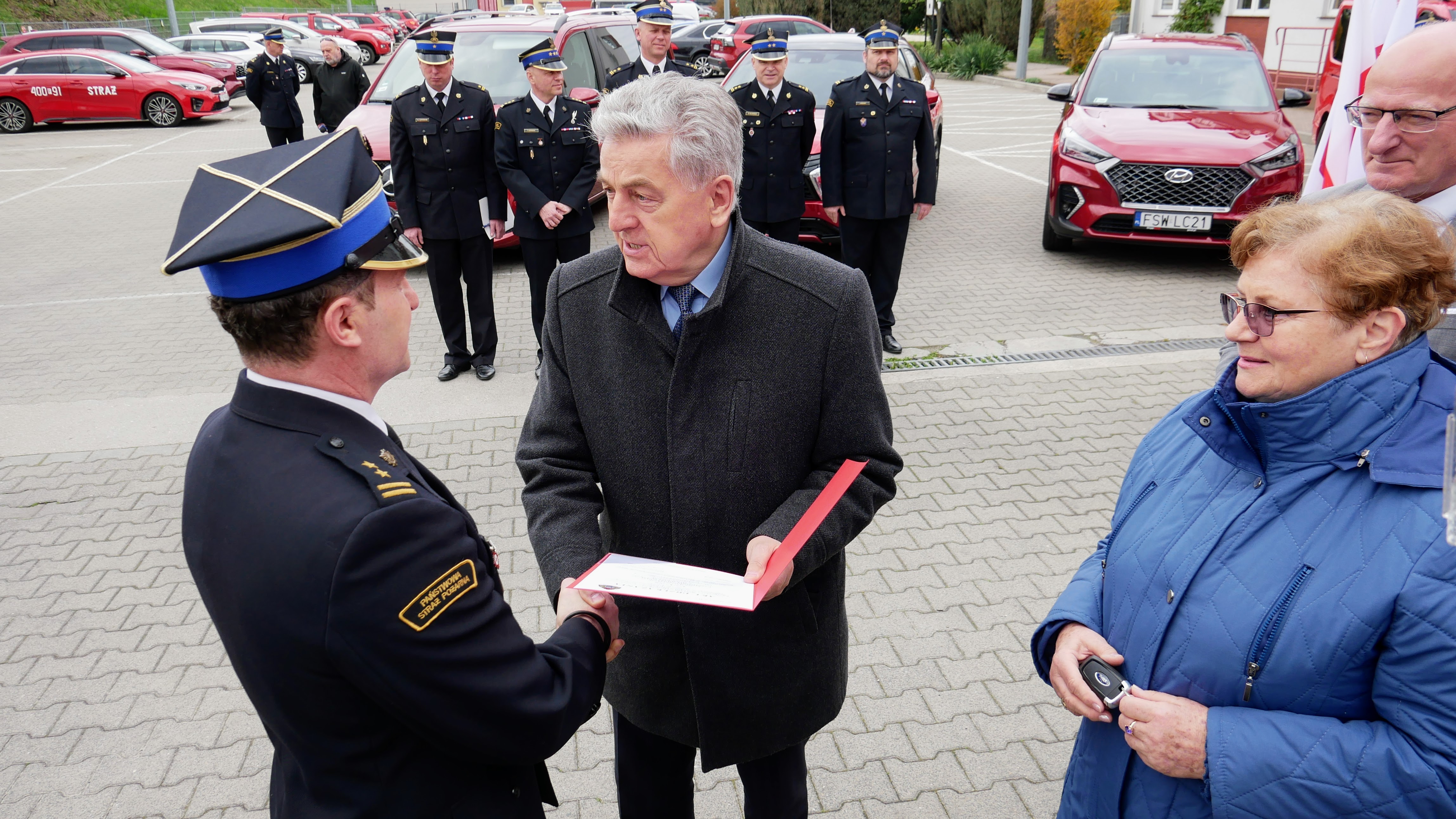 Zastępca Lubuskiego Komendanta Wojewódzkiego st. bryg. Krystian Kosela wraz z Wicewojewodą Lubuskim Wojciechem Perczakiem oraz Posłami na Sejm RP Elżbietą Płonką i Jackiem Kurzępą, wręczył akt przekazania pojazdu Komendantowi Powiatowemu PSP w Świebodzinie bryg. Mariuszowi Wójcikowi.