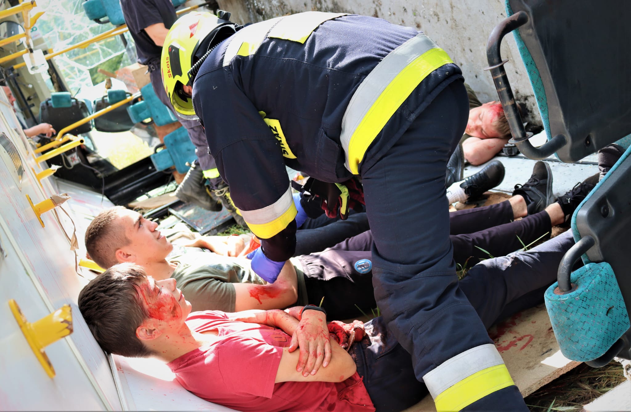 - przekazać poszkodowanych służbie medycznej ZRM,