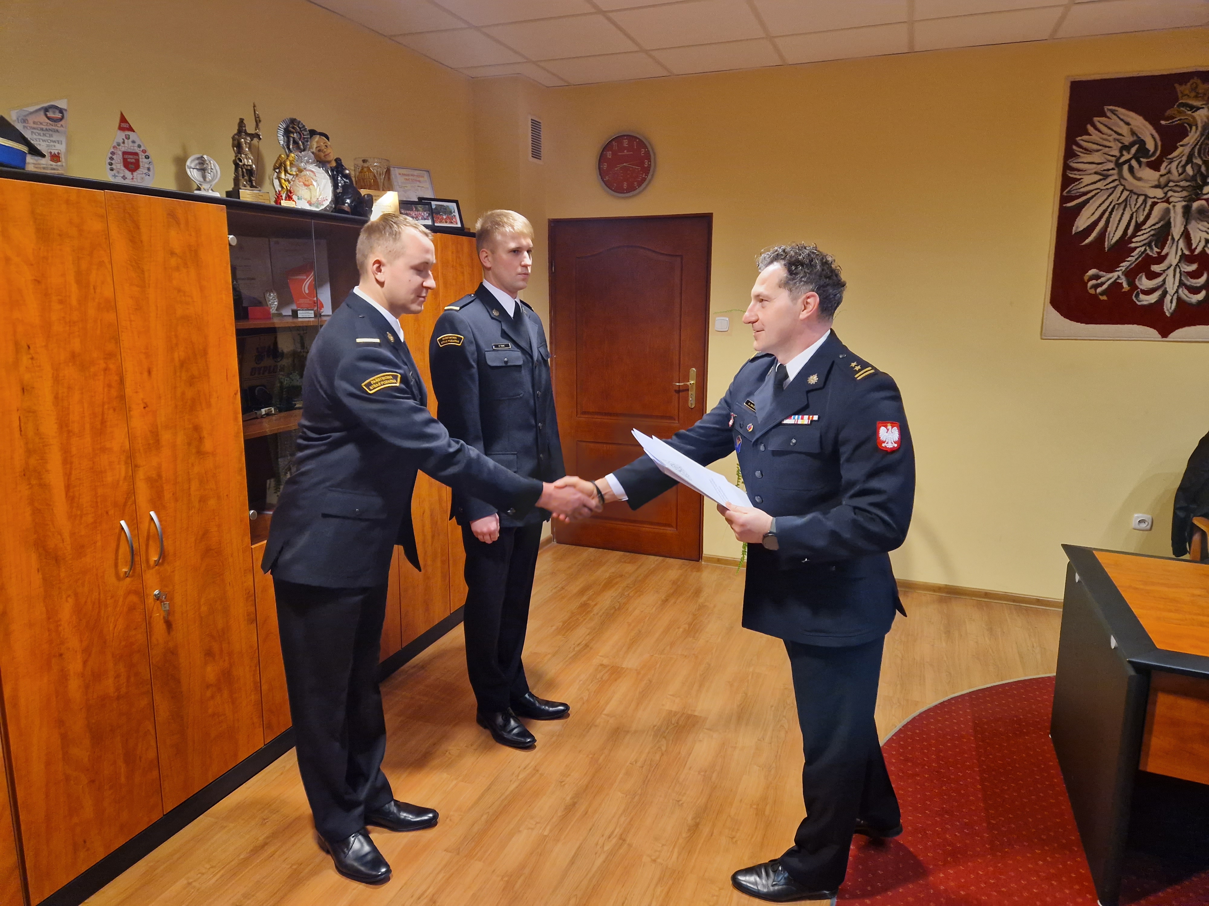 W dniu 2 stycznia 2023 roku w Komendzie Powiatowej Państwowej Straży Pożarnej w Świebodzinie odbyła się uroczystość, podczas której Komendant Powiatowy PSP w Świebodzinie bryg. Mariusz Wójcik w obecności Dowódców Jednostki Ratowniczo-Gaśniczej w Świebodzinie wręczył decyzję o mianowaniu funkcjonariuszy do służby stałej: