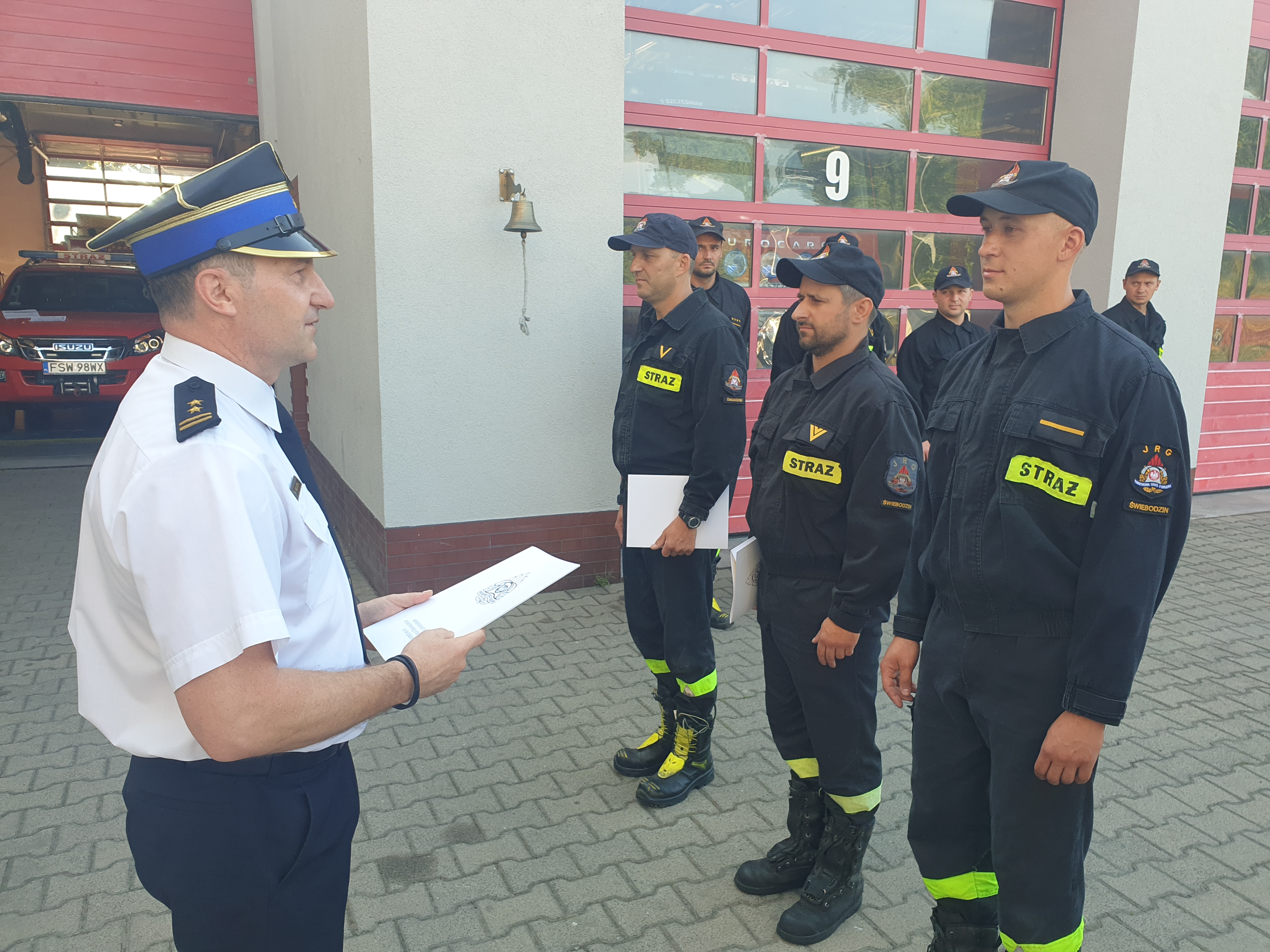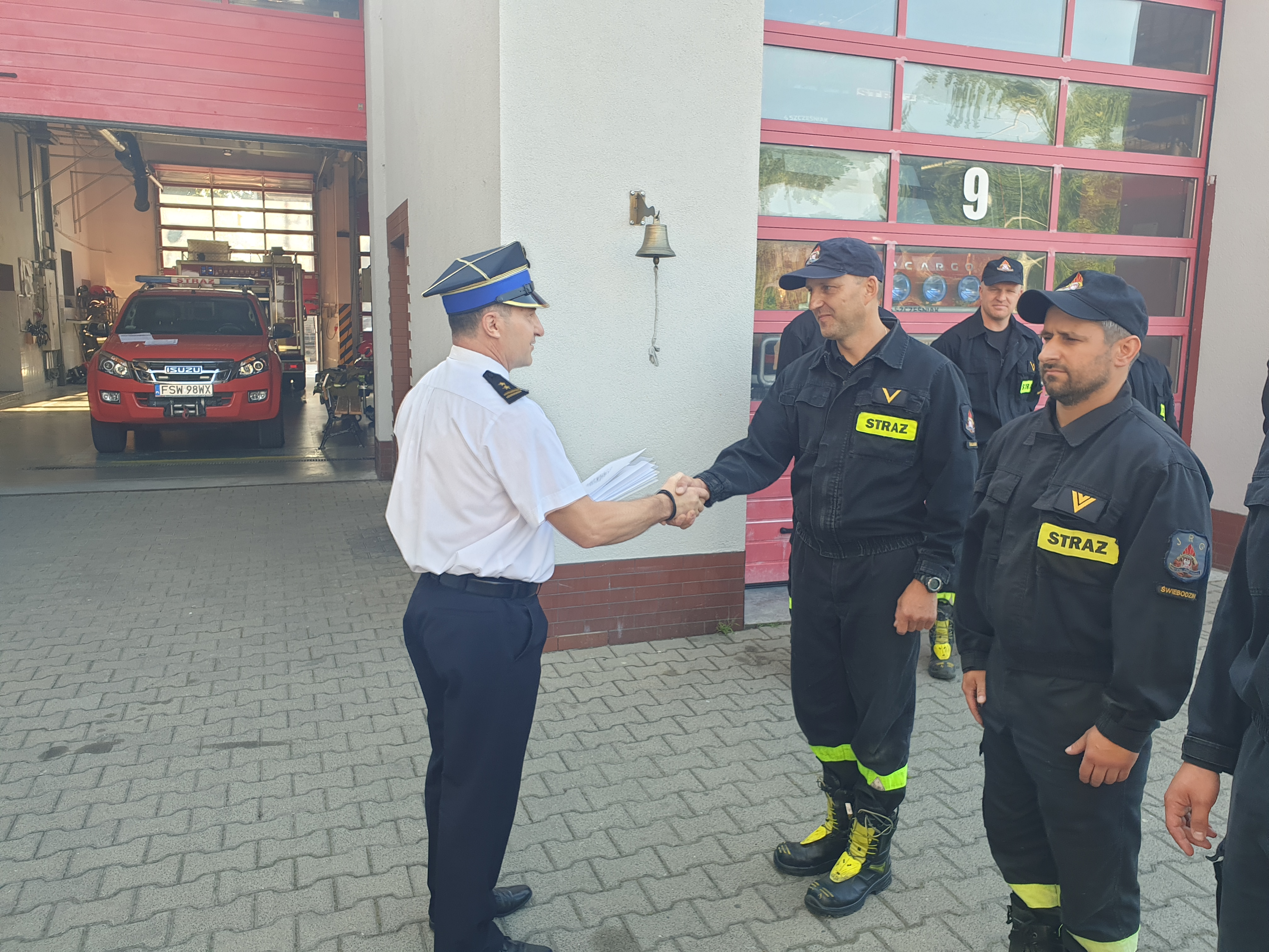 5 sierpnia 2022 roku, podczas zmiany służby w Komendzie Powiatowej Państwowej Straży Pożarnej w Świebodzinie Komendant Powiatowy bryg. Mariusz Wójcik wręczył funkcjonariuszom nagrody jubileuszowe z okazji 25 lat pracy zawodowej Panu ogn. Tomaszowi Łysakowskiemu oraz 20 lat pracy zawodowej Panu st.ogn. Łukaszowi Kuroczyckiemu, dziękując za dotychczasowe lata pracy i służby w PSP.