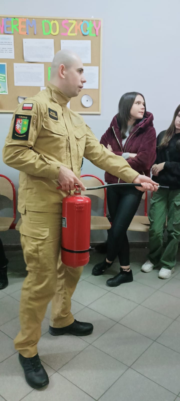 - rodzaje sprzętu gaśniczego dostępnego w szkole i sposób jego użycia,