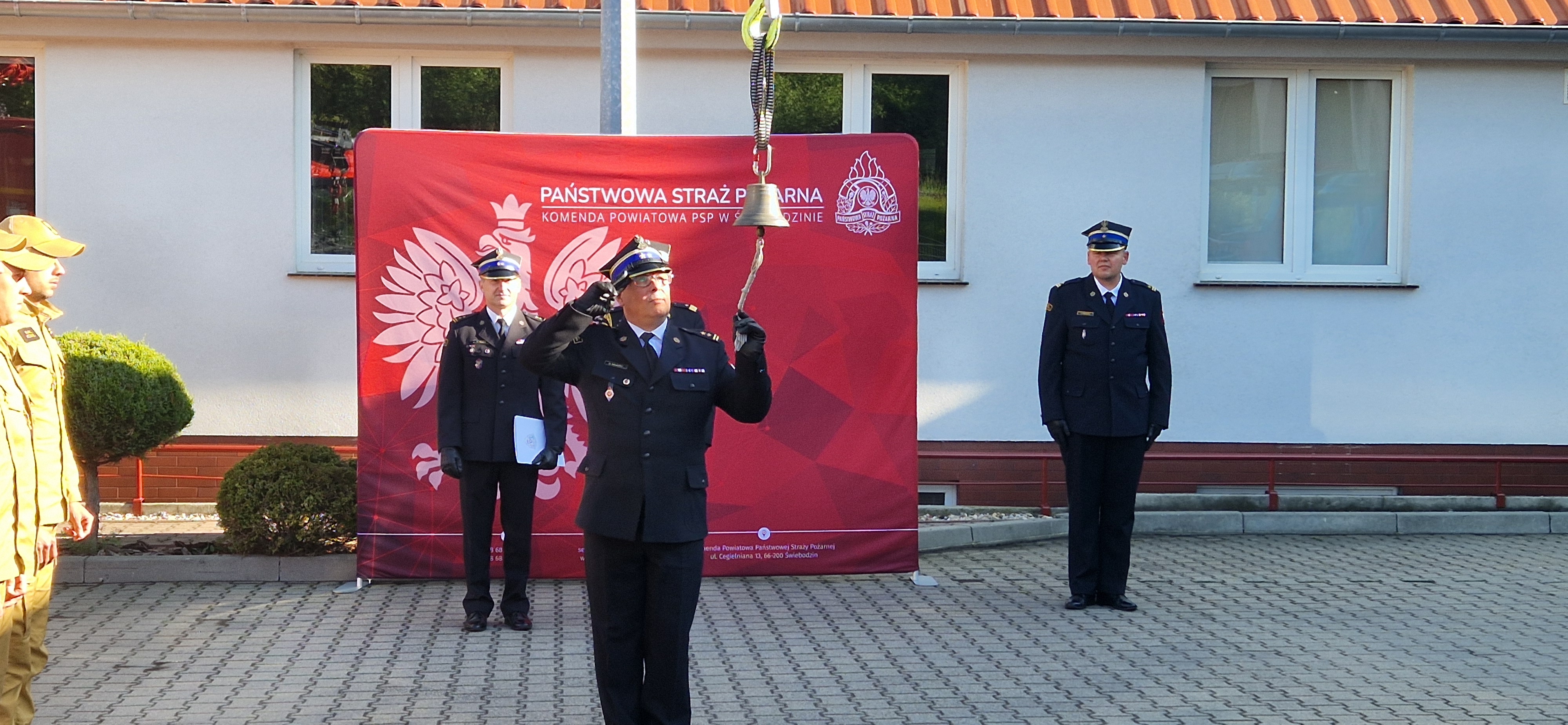 20 maja 2025 roku w Komendzie Powiatowej PSP w Świebodzinie odbyła się uroczysta zmiana służby, podczas której ostatnią służbę zakończył bryg. Dariusz Kałużny – Dowódca Świebodzińskiej Jednostki Ratowniczo-Gaśniczej. Komendant Wojewódzki PSP w Gorzowie Wlkp. nadbryg. Janusz Drozda wraz z Komendantem Powiatowym bryg. Mariuszem Wójcikiem, funkcjonariuszami Komendy Powiatowej i JRG, podziękował bryg. Dariuszowi Kałużnemu za 35 letnią służbę w ochronie przeciwpożarowej i wkład włożony w zapewnienie bezpieczeństwa mieszkańcom powiatu świebodzińskiego. Wyrazy uznania przekazali również funkcjonariusze Ośrodka Szkolenia Komendy Wojewódzkiej oraz licznie przybyli druhowie OSP jednostek powiatu świebodzińskiego.