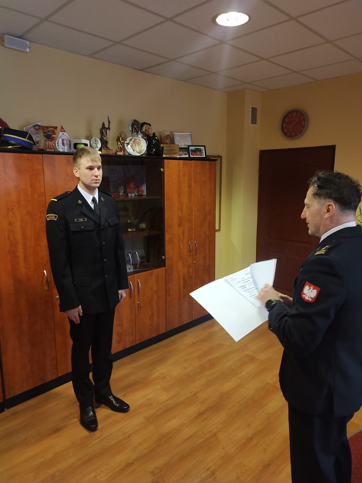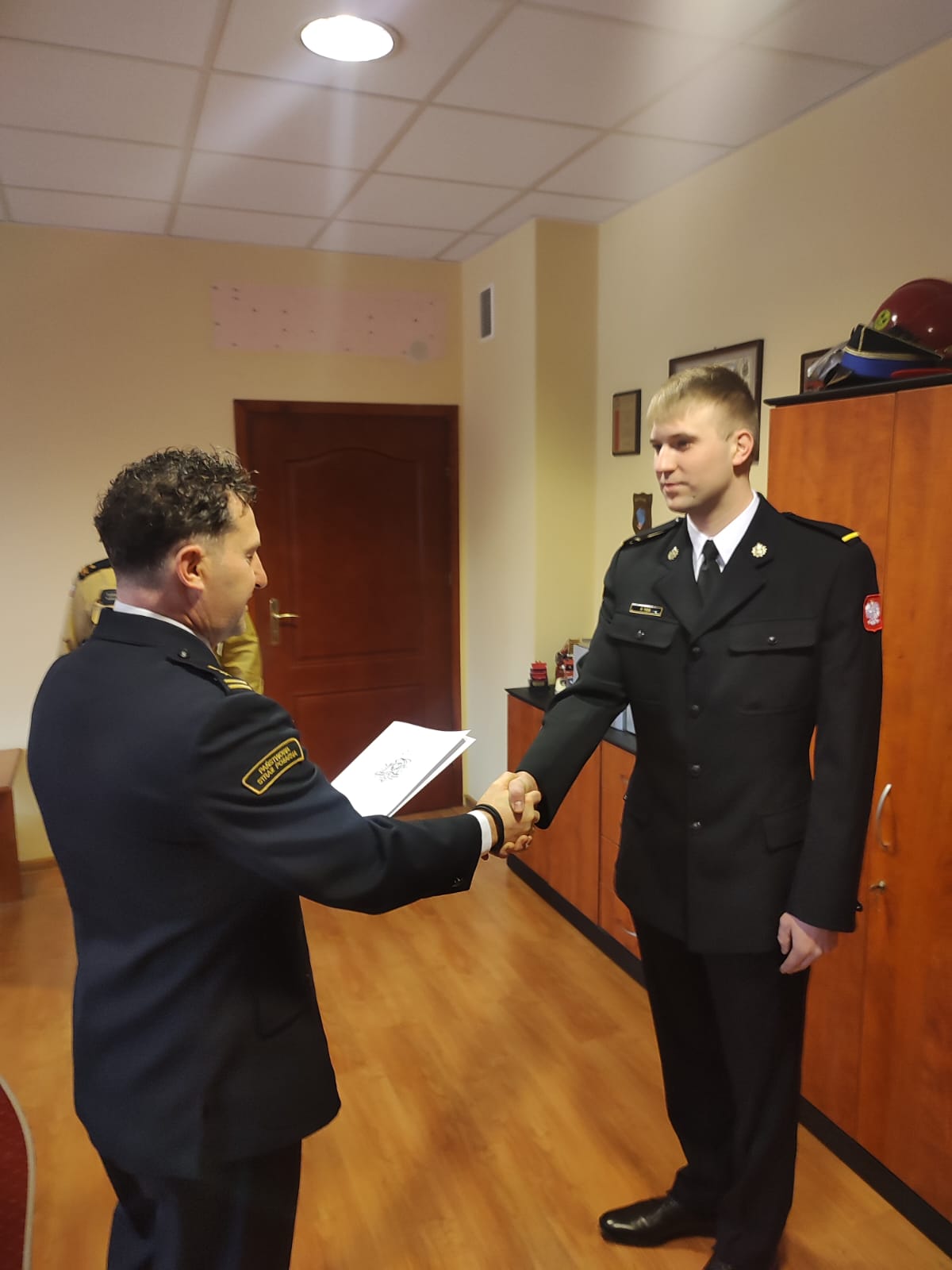 W dniach 3-5 kwietnia 2023 roku w Komendzie Powiatowej Państwowej Straży Pożarnej w Świebodzinie odbyły się uroczystości, podczas których Komendant Powiatowy PSP w Świebodzinie bryg. Mariusz Wójcik w obecności Dowódców Jednostki Ratowniczo-Gaśniczej w Świebodzinie wręczył decyzję o mianowaniu funkcjonariusza na wyższe stanowisko służbowe: