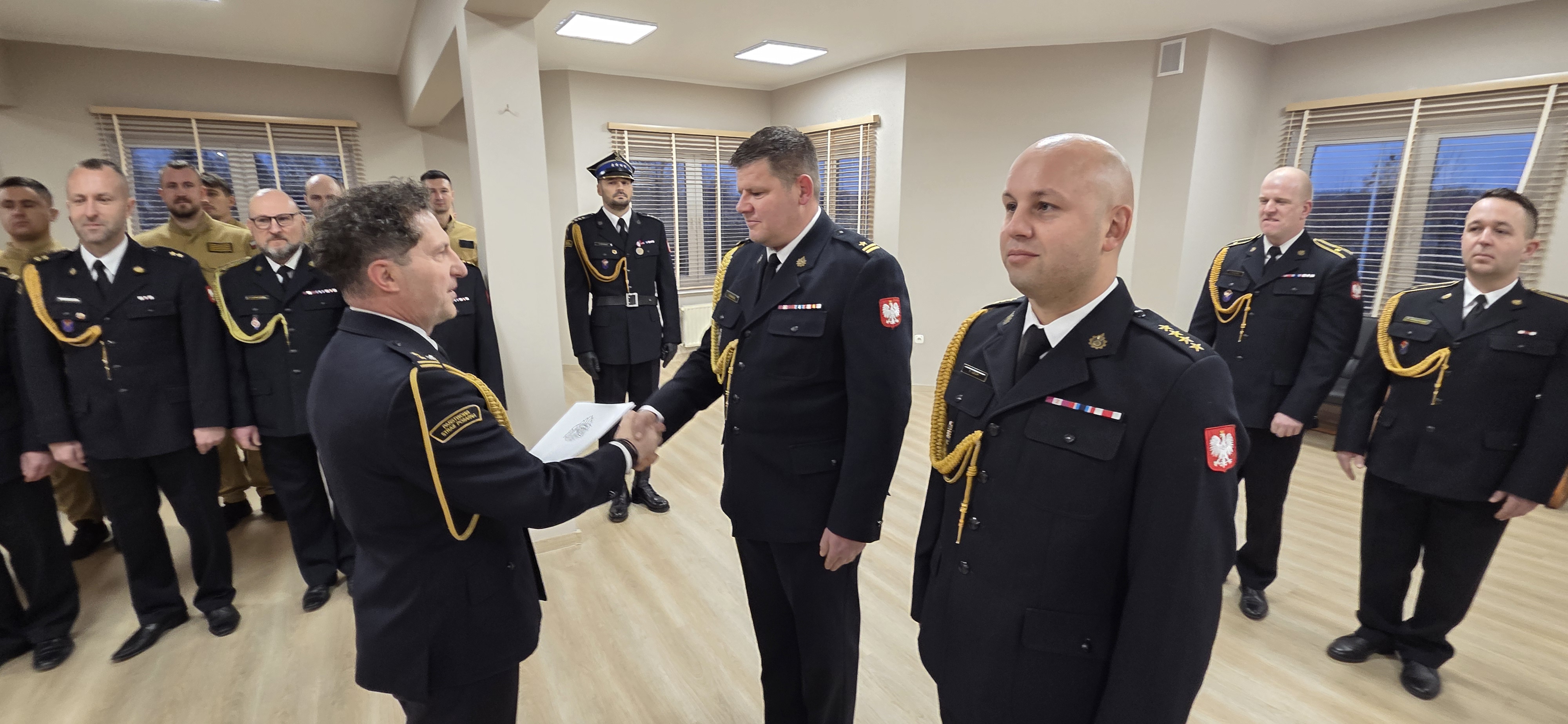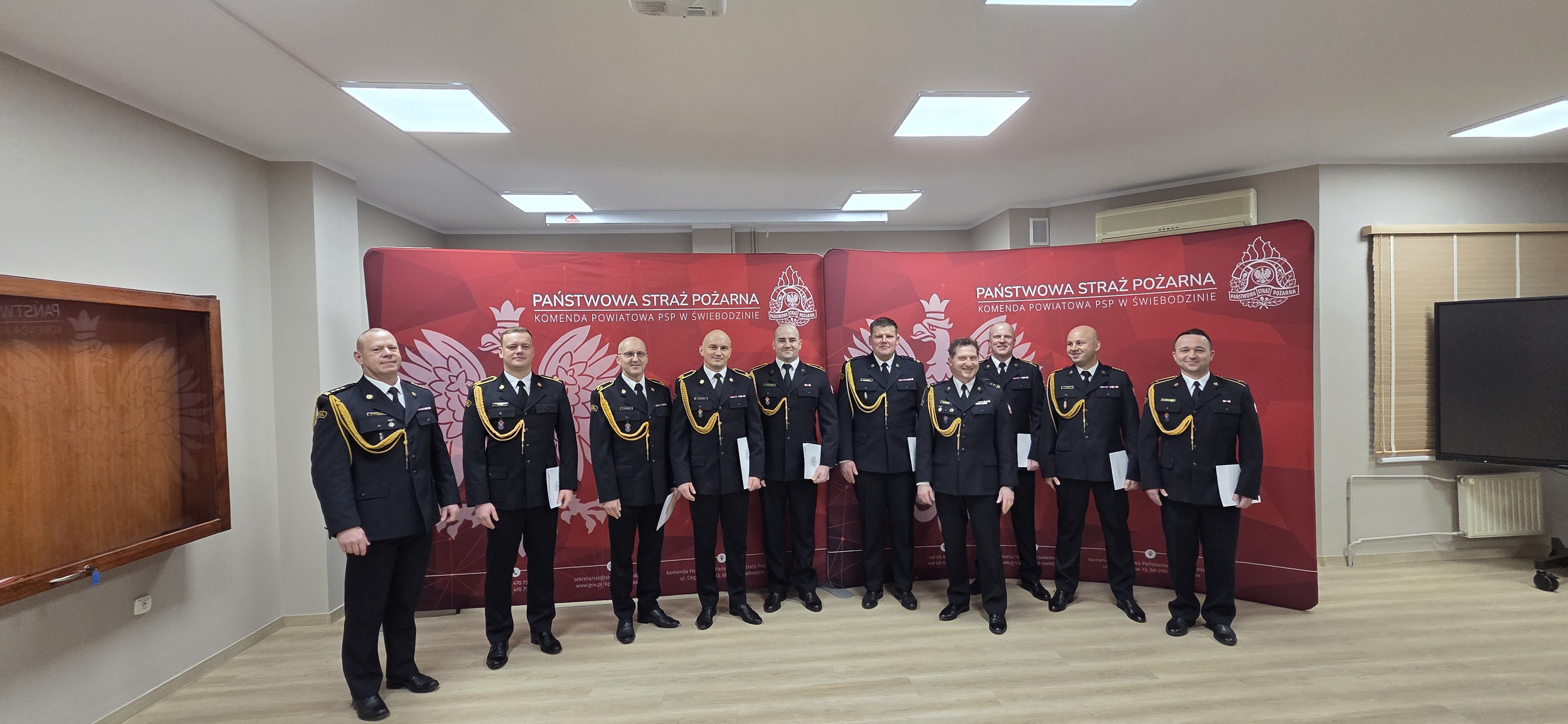 29 grudnia 2025 roku w Komendzie Powiatowej Państwowej Straży Pożarnej w Świebodzinie odbyła się uroczysta zbiórka, podczas której Komendant Powiatowy PSP w Świebodzinie bryg. Mariusz Wójcik wręczył decyzję o mianowaniu funkcjonariuszy na wyższe stanowisko służbowe oraz powierzeniu obowiązków: