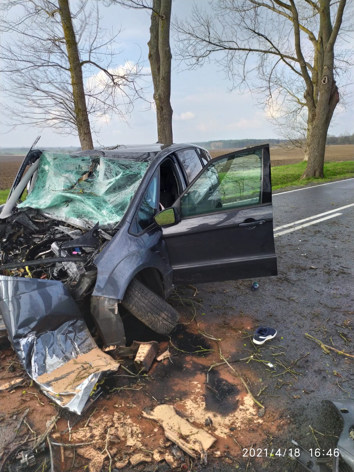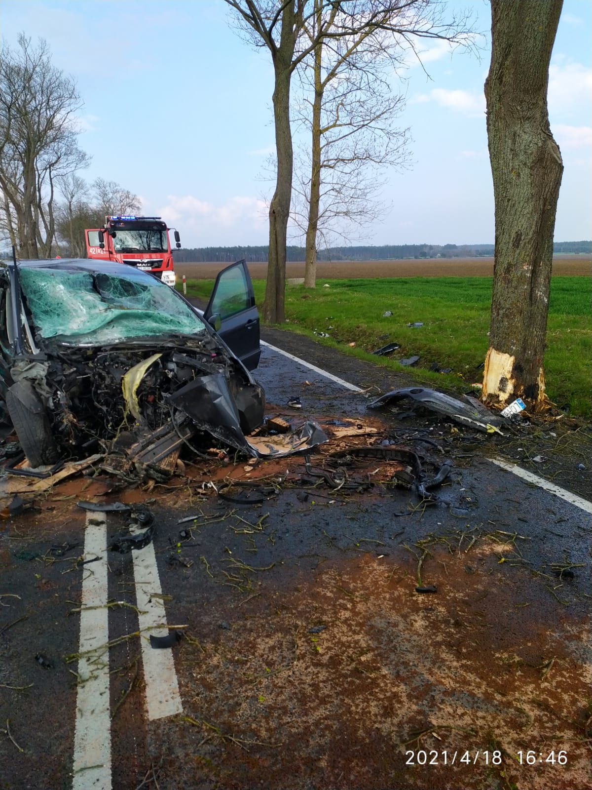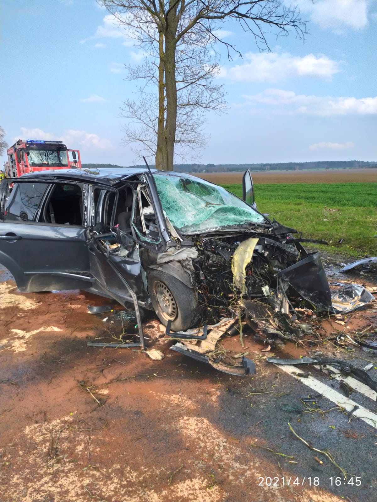W dniu 18 kwietnia 2021 r. do Stanowiska Kierowania Komendanta Powiatowego w Świebodzinie wpłynęło zgłoszenie dotyczące wypadku samochodu osobowego, do którego doszło na DW 276, w pobliżu miejscowości Skąpe. Do zdarzenia zostały zadysponowane zastępy z JRG Świebodzin oraz OSP Skąpe.