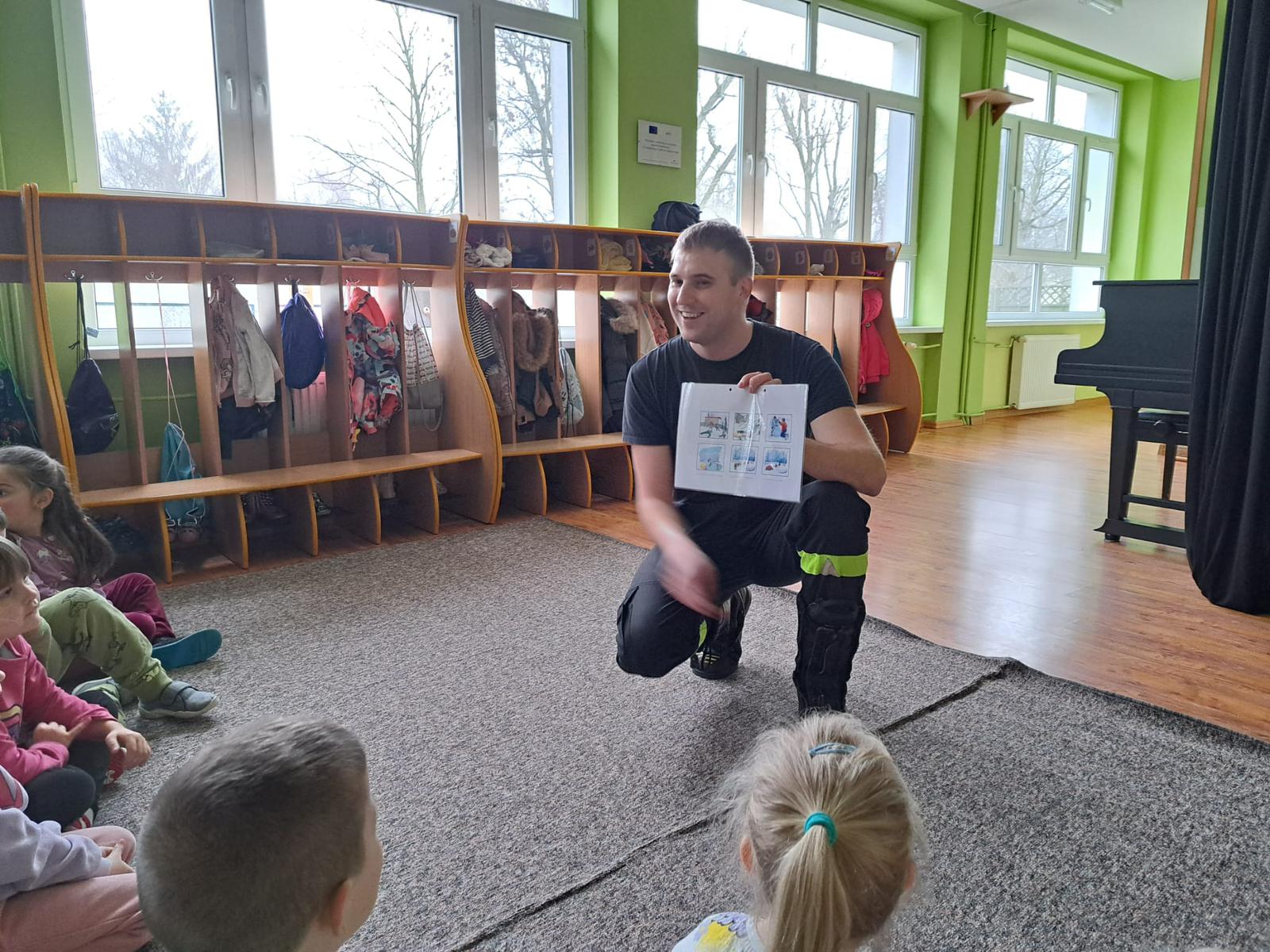 08 lutego 2024 r., w związku z nadchodzącymi feriami zimowymi, funkcjonariusz Państwowej Straży Pożarnej w Świebodzinie odwiedził dzieci uczęszczające do Publicznego Przedszkola nr 5 w Świebodzinie. Po początkowej konwersacji dotyczącej sposobu spędzania czasu w zbliżającym się okresie wolnym od nauki, wspólnie omówiono niebezpieczeństwa, które mogą towarzyszyć w trakcie wypoczynku oraz w jaki sposób ochronić się przed nimi. Poruszono kwestię zachowania bezpieczeństwa podczas zabaw na śniegu i lodzie, a także procedurę powiadamiania służb ratunkowych. Dziękujemy za aktywne uczestnictwo w spotkaniu i życzymy udanych i bezpiecznych ferii zimowych.