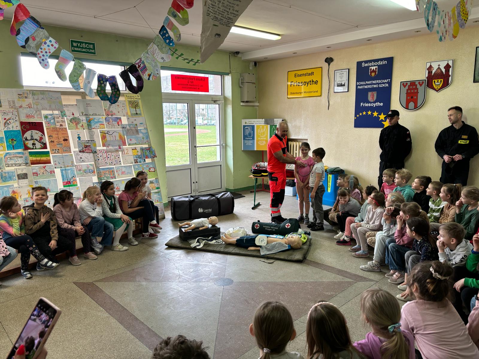 22 marca 2024 r. funkcjonariusze z Komendy Powiatowej Państwowej Straży Pożarnej w Świebodzinie uczestniczyli w spotkaniu pod nazwą "Ratujemy i uczymy ratować" zorganizowanym w SP nr 3 im. Czesława Niemena w Świebodzinie. Dzięki dużemu zaangażowaniu dzieci udało się przekazać cenną wiedzę dotyczącą udzielania pierwszej pomocy w sytuacjach zagrożenia życia. Również, uczniowie popisali się bardzo dobrą znajomością procedury powiadamiania o zaistniałym zdarzeniu na nr 112. Dzieci mogły zobaczyć sprzęt specjalistyczny znajdującym się na wyposażeniu wozu bojowego oraz usłyszeć o trudach naszej pracy.