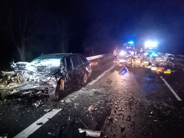 Po dojeździe zastępów na miejsce zdarzenia stwierdzono, że doszło do zderzenia trzech pojazdów: dwóch samochodów osobowych, jednego ciężarowego z naczepą. Droga krajowa nr 92 była całkowicie zablokowana. Samochód BMW 5 stał na pasie awaryjnym, przodem w kierunku Poznania. Samochód BMW 3 stał na środku drogi, obrócony bokiem do kierunku jazdy w kierunku Świecka. Samochód ciężarowy przewożący drewno konstrukcyjne znajdował się na pasie awaryjnym w odległości 300 metrów od samochodów osobowych, w kierunku granicy. Samochodem BMW 5 podróżowały dwie osoby, jedna opuściła pojazd o własnych siłach i znajdowała się na zewnątrz, druga wewnątrz pojazdu. Samochodem BMW 3 podróżowały 2 osoby, jedna osoba znajdowała się wewnątrz pojazdu na tylnej kanapie, druga osoba, przytomna znajdowała się pod pojazdem. Kierujący pojazdem ciężarowym nie odniósł żadnych obrażeń.