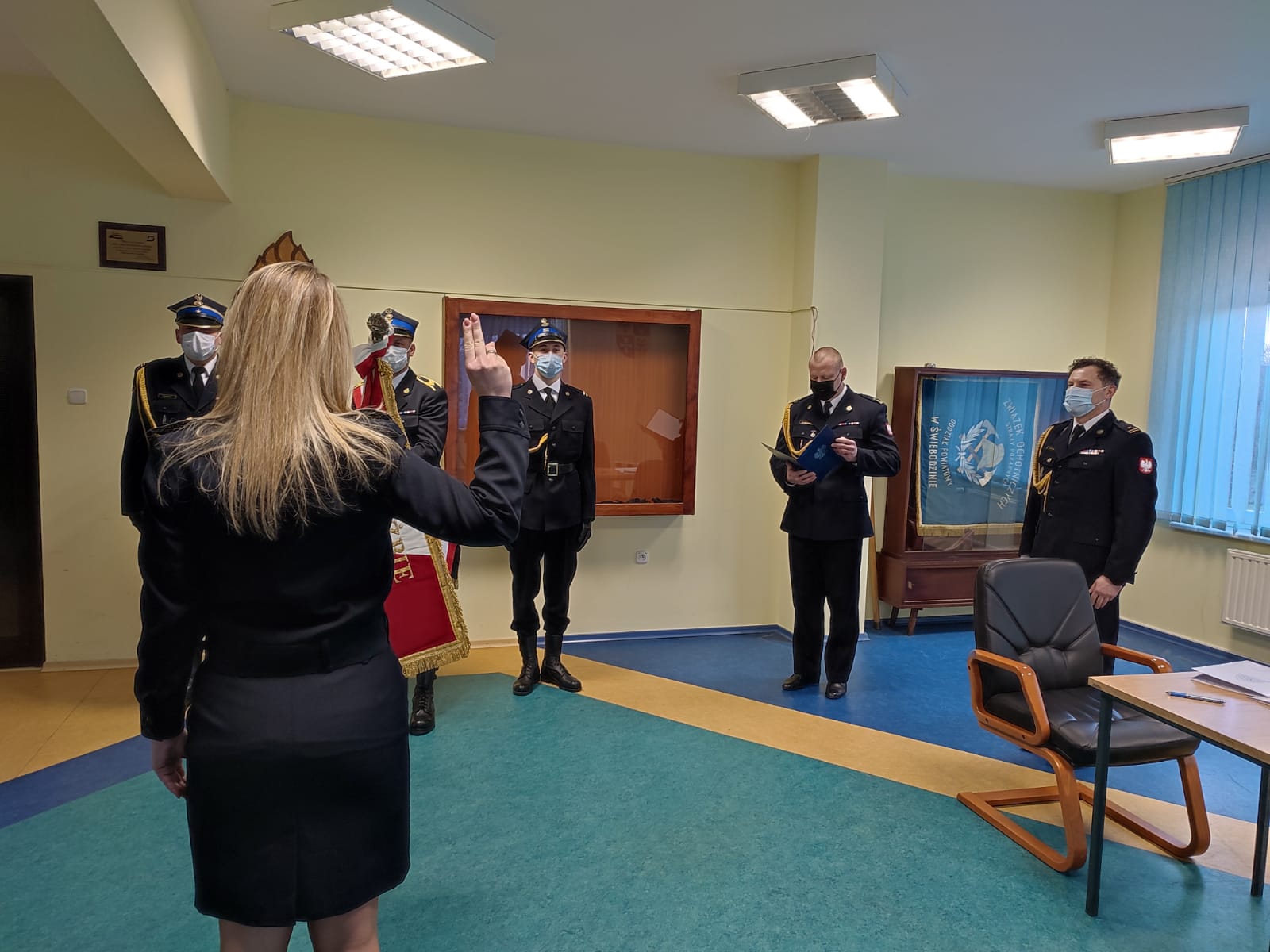 Tekst roty ślubowania strażaka Państwowej Straży Pożarnej w dniu 02 lutego 2022 roku zabrzmiał w Komendzie Powiatowej PSP w Świebodzinie. Ślubowanie złożył nowoprzyjęty funkcjonariusz str. Marta Gajewska, w obecności kolegów i kadry kierowniczej, a odebrał Komendant Powiatowy mł.bryg. Mariusz Wójcik, który przed ceremonią przytoczył słowa zasad etyki zawodowej: