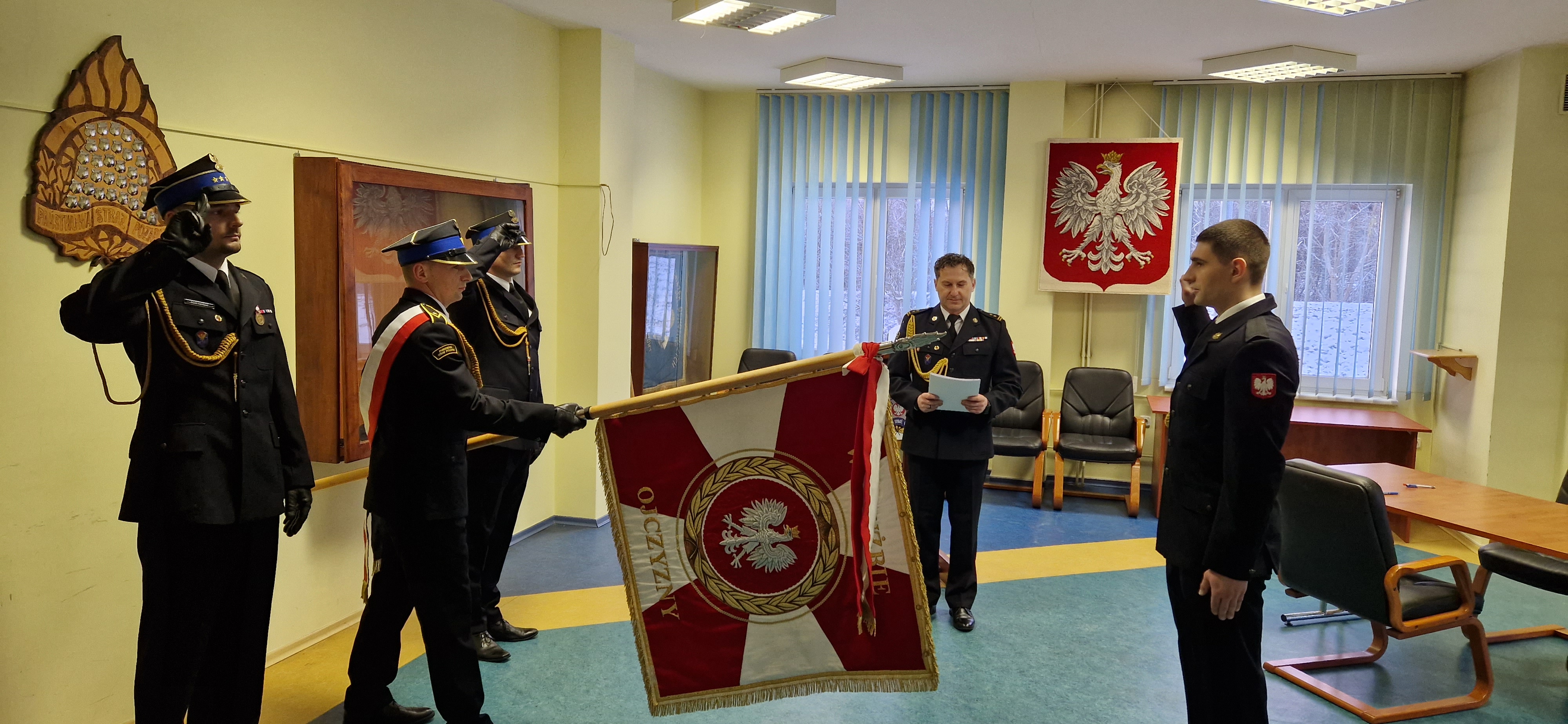 Tekst roty ślubowania strażaka Państwowej Straży Pożarnej w dniu 16 stycznia 2024 roku zabrzmiał w Komendzie Powiatowej PSP w Świebodzinie. Ślubowanie złożył nowoprzyjęty funkcjonariusz str. Krystian Bruss, w obecności kolegów i kadry kierowniczej, a odebrał Komendant Powiatowy bryg. Mariusz Wójcik, który przed ceremonią przytoczył słowa zasad etyki zawodowej:
