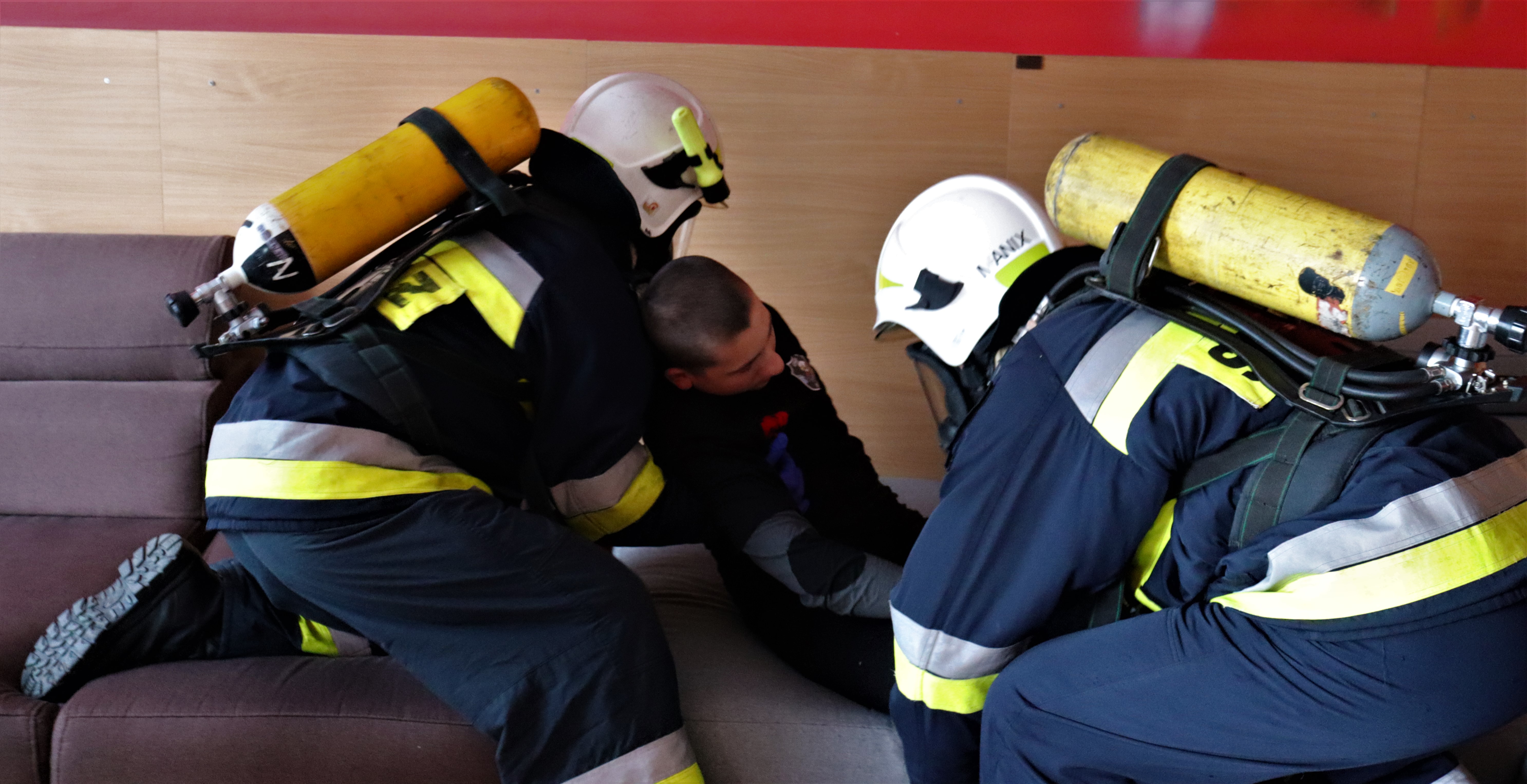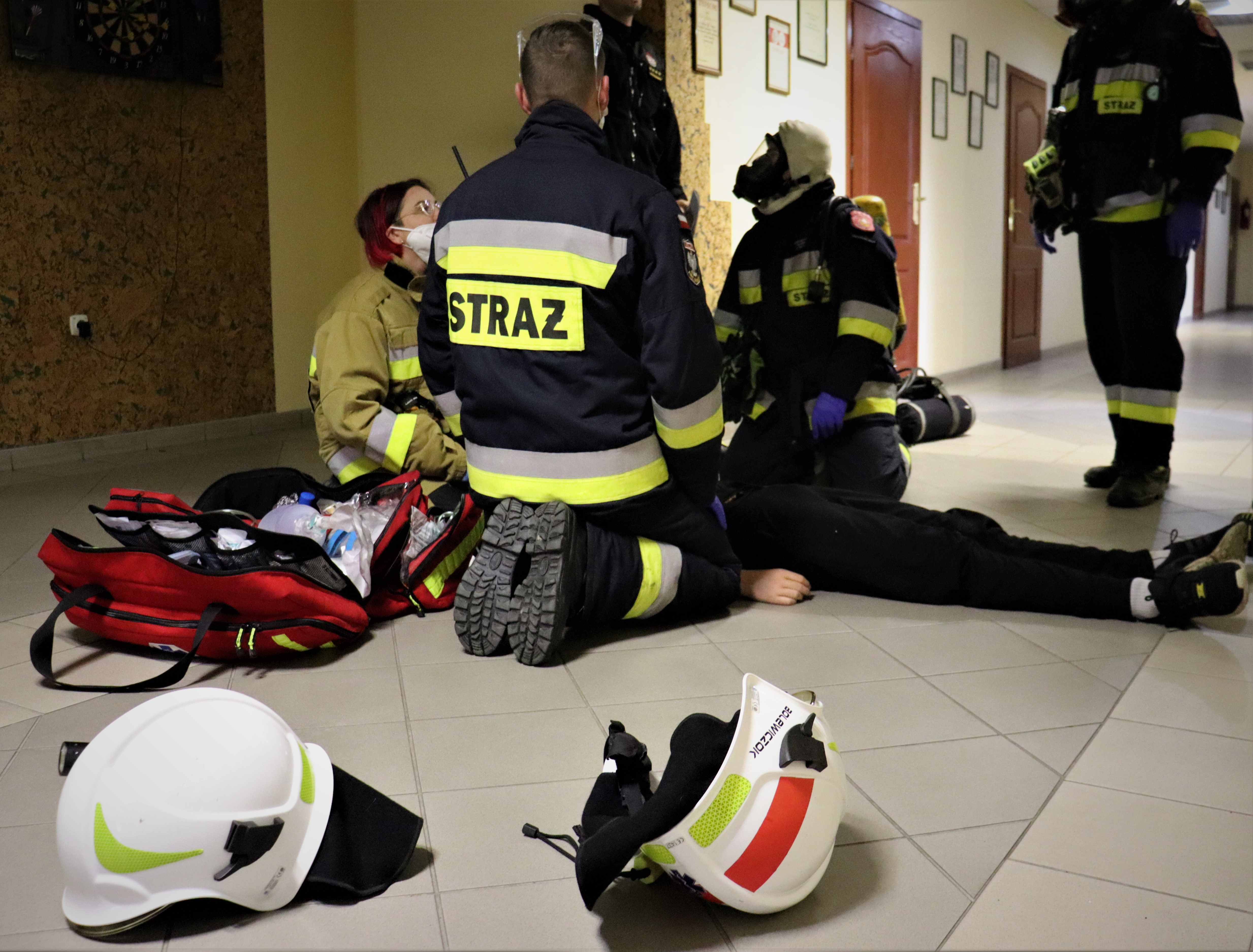 Mężczyzna zadzwonił po pogotowie z informacją, że źle się czuję. Ma ból głowy, nudności, wymioty, osłabienie senność. Z powodu udziału zespołu PRM przy innym zdarzeniu do zdarzenia dysponowane są zastępy ochrony ppoż. Po dojeździe na miejsce zdarzenia strażacy przez okno widzą osobę nieprzytomną leżącą na kanapie obok odpalonego kominka.
