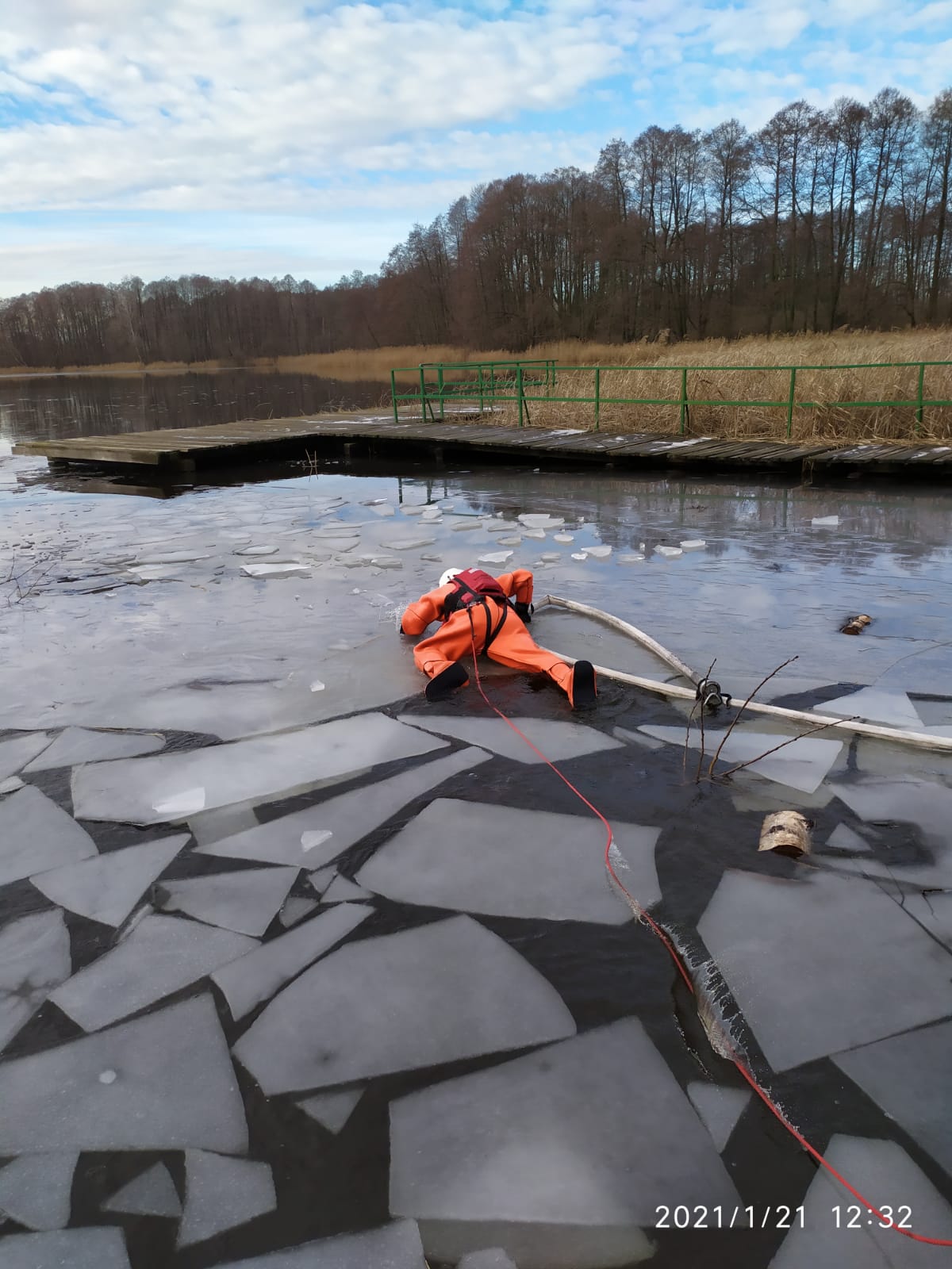 W dniu 21 stycznia 2021 r. na jeziorze w Ołoboku, na III zmianie służbowej przeprowadzono ćwiczenia z zakresu ratownictwa wodno-lodowego w zakresie podstawowym.