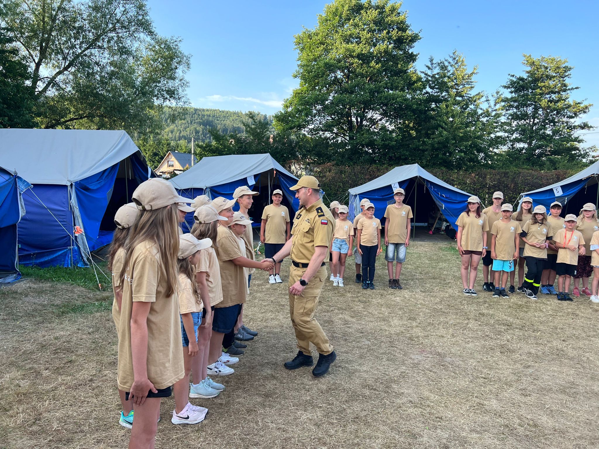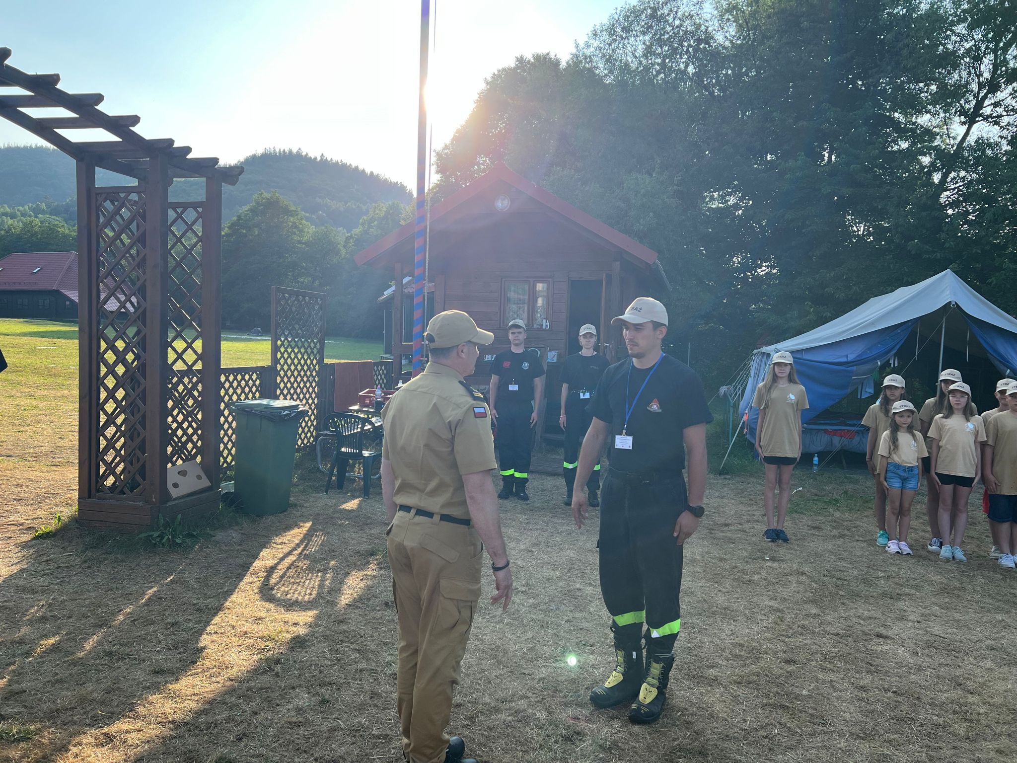 Podczas spotkania na uroczystej zbiórce z uczestnikami obozu Komendant podkreślił, że docenia wkład młodych druhów w życie MDP oraz dodał, że mocno kibicuje i wierzy w to, że kiedyś spełnią swoje młodzieńcze marzenia i zostaną strażakami PSP.