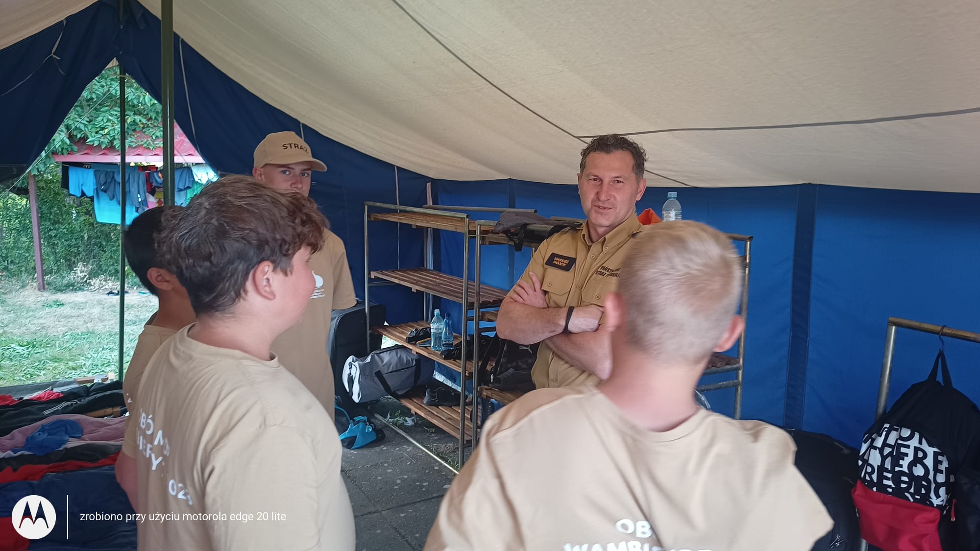 W dniu 11 lipca 2023r., podczas wieczornego apelu Komendant Powiatowy Państwowej Straży Pożarnej ze Świebodzina bryg. Mariusz Wójcik wizytował III obóz strażacki Młodzieżowych Drużyn Pożarniczych pod hasłem "Za pan brat z pierwszą pomocą".