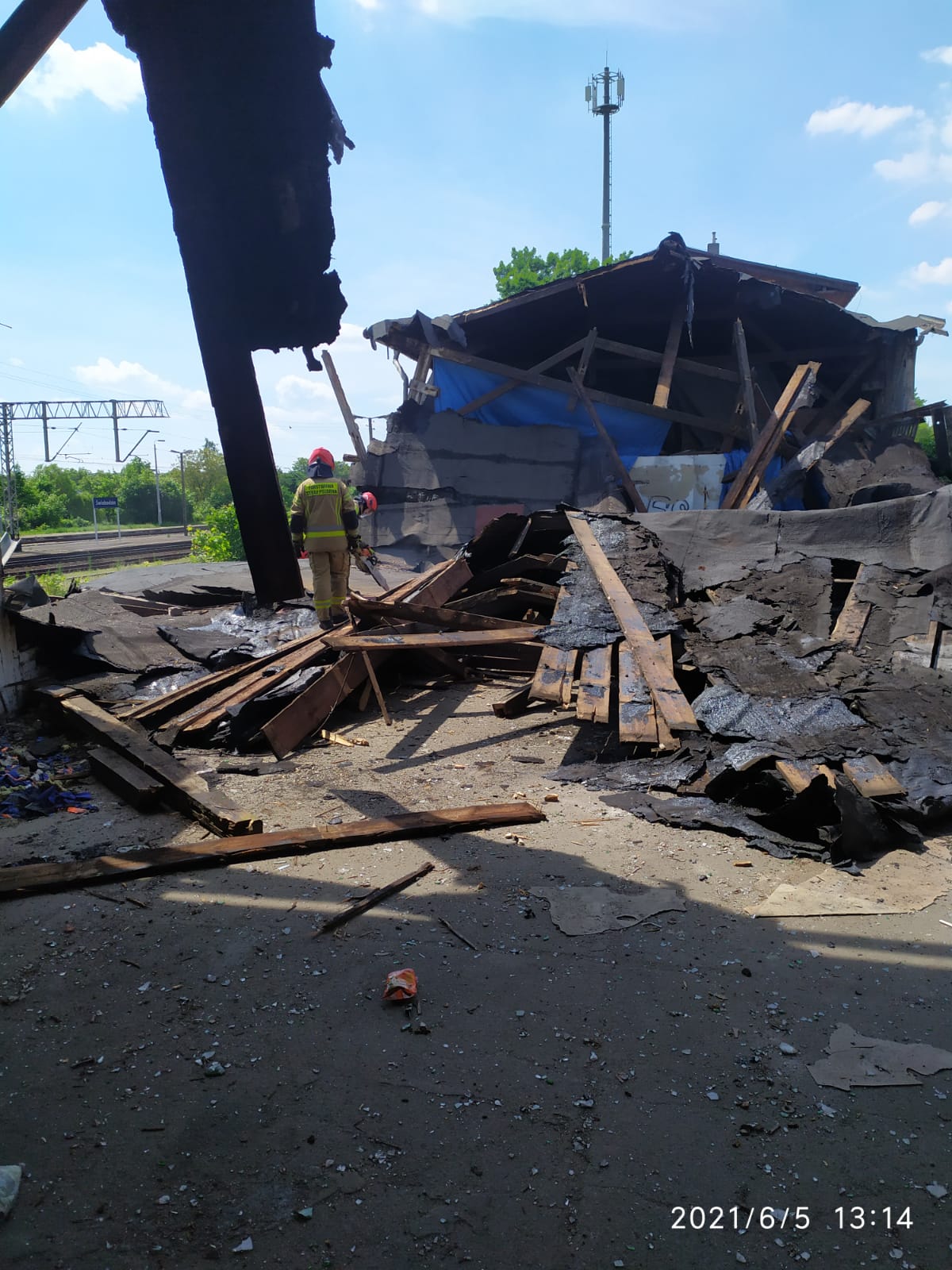 W dniu 5 czerwca 2021 r. do Stanowiska Kierowania Komendanta Powiatowego PSP w Świebodzinie wpłynęło zgłoszenie dotyczące zawalenia się dachu w nieużytkowanym budynku magazynowym PKP. Po przyjeździe zastępów na miejsce zdarzenia i potwierdzeniu zasadności podjęcia działań ratowniczych zabezpieczono miejsce zdarzenia. W wyniku rozpoznania ustalono, że zawaliła się drewniana konstrukcja dachowa pokryta papą w budynku magazynowym (wymiary całego obiektu: 80m x 15m x 8m wysokości).