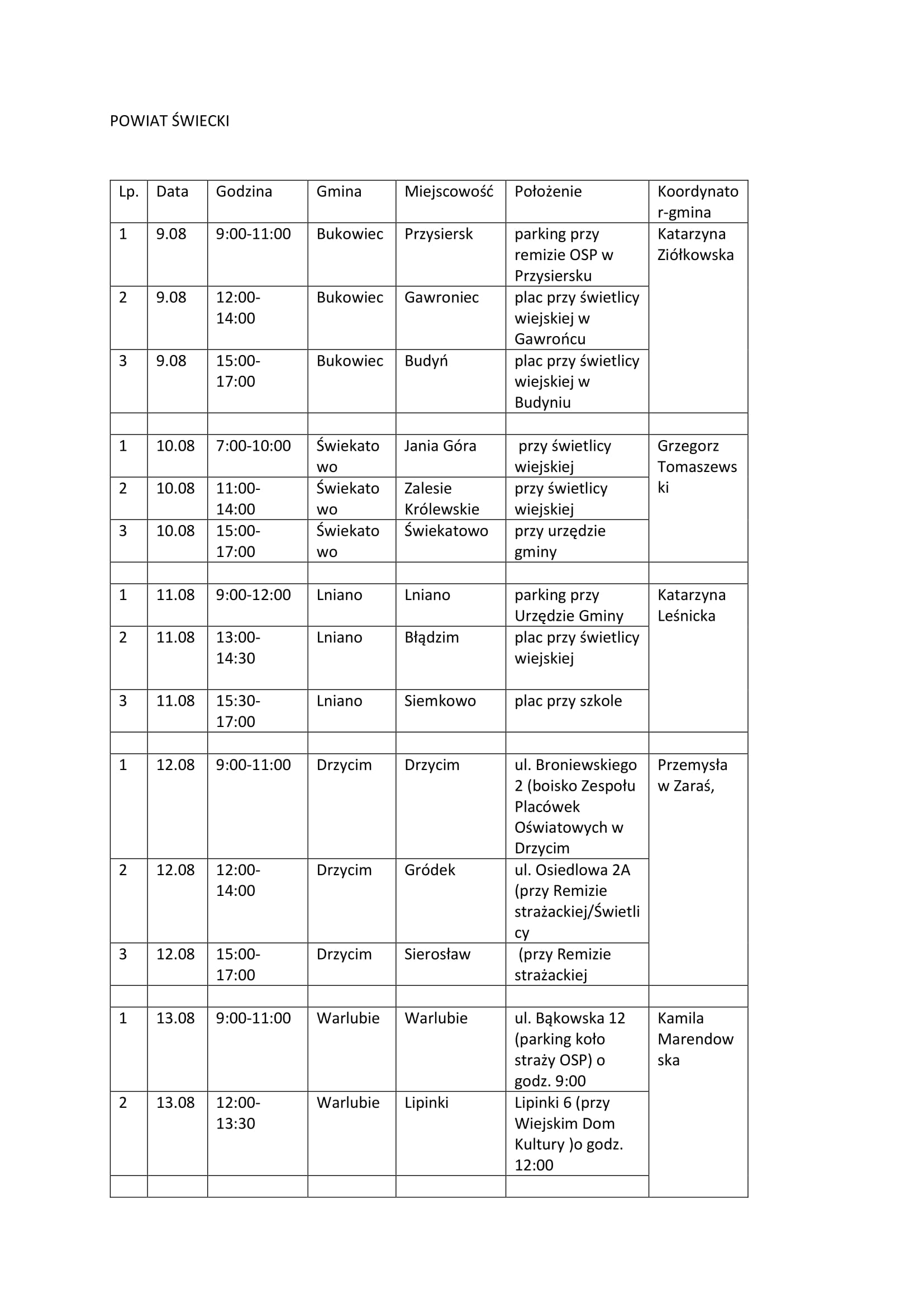 Harmonogram pracy "szczepionkobusa" w powiecie świeckim 03.08.2021 Zdjęcia (2) Pokaż zdjęcie 1 z galerii. Pokaż zdjęcie 2 z galerii.