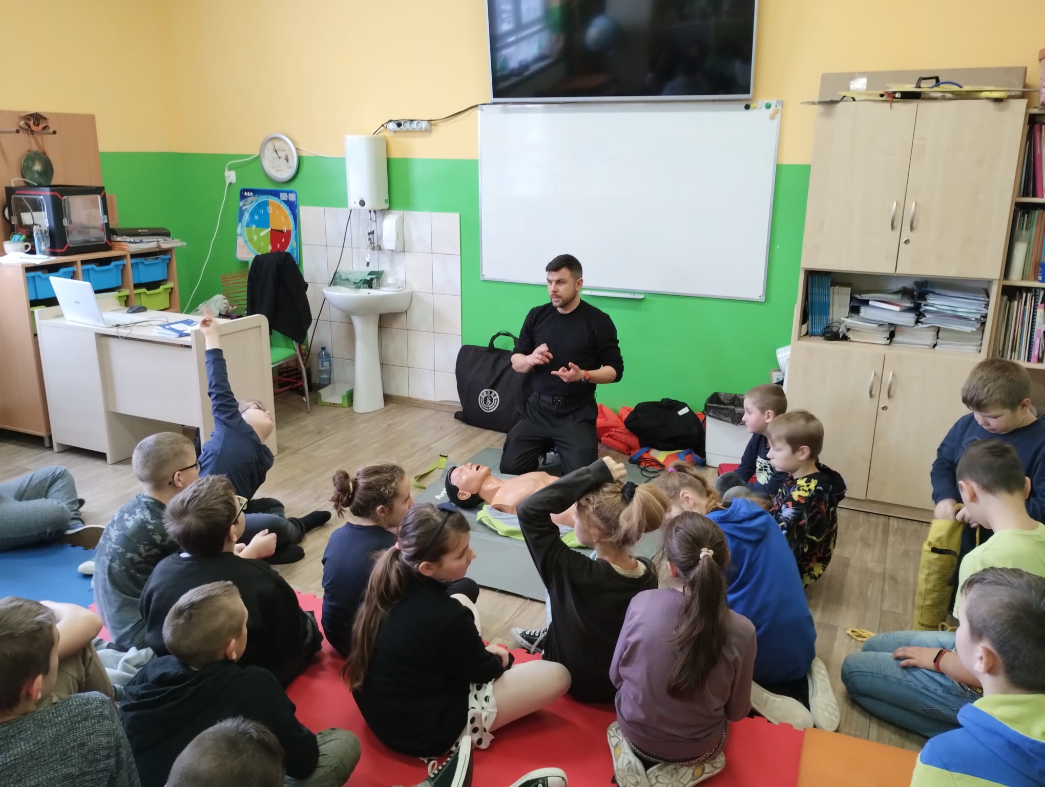 Głównym tematem spotkania było bezpieczeństwo nad wodą oraz promocja proekologicznego zachowania i korzystania z zasobów wodnych. Podczas zajęć mundurowi przekazali informację, jak należy prawidłowo udzielać pierwszej pomocy oraz wezwać służby ratunkowe. Ponadto, uczestnicy warsztatów uczyli się przekazywania ważnych informacji na temat poszkodowanego i miejsca zdarzenia. Poznali sposoby sprawdzania przytomności i udzielenia pierwszej pomocy w różnych sytuacjach. Uczniowie mieli również możliwość praktycznego sprawdzenia zdobytej wiedzy.
