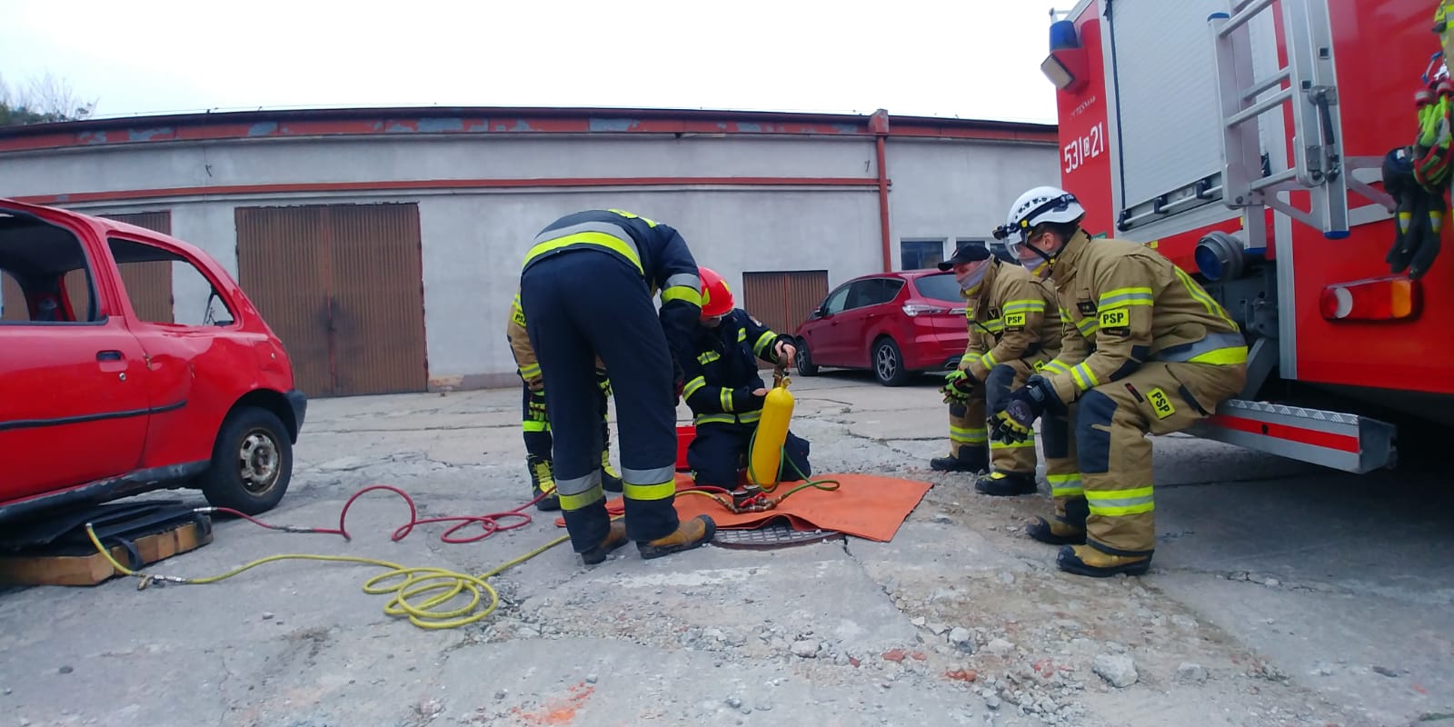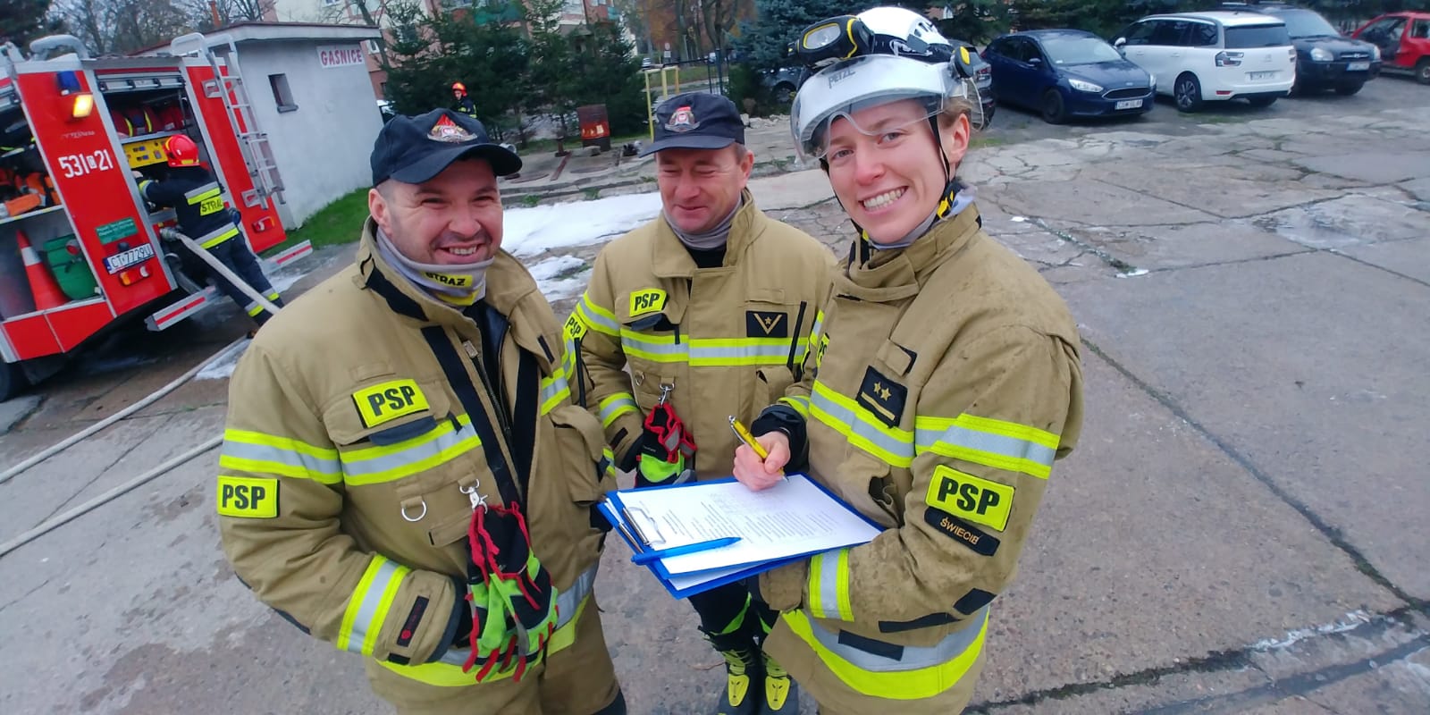 10 listopada w Jednostce Ratowniczo-Gaśniczej odbył się wewnętrzny egzamin końcowy dla funkcjonariuszy kończących 3 letni okres służby przygotowawczej. Do egzaminu podeszło dwóch funkcjonariuszy aspirujących na stanowisko ratownika i ratownika-kierowcy. Na okoliczność przeprowadzenia egzaminu powołano czteroosobową komisję, w skład której weszło dwóch dowódców oraz dwóch starszych operatorów sprzętu. Egzamin realizowany był w formie praktycznych zadań z dziedziny: ratownictwo techniczne, ratownictwo wysokościowe, taktyka zwalczania pożarów i sprzęt do działań ratowniczo-gaśniczych. Zadaniem strażaków było m.in.: podniesienie pojazdu osobowego przy pomocy poduszek ratowniczych wysokiego ciśnienia, prezentacja technik operowania narzędziami hydraulicznymi i usunięcie drzwi samochodu osobowego oraz budowa stanowiska gaśniczego na drabinie. Dodatkowo funkcjonariusze mogli wykazać się nabytymi umiejętnościami przy obsłudze sprzętu ochrony układu oddechowego, technikami operowania prądami wody, sprawianiem linii ssawnej oraz asekuracją na wysokości. Dwie osoby podchodzące do egzaminu ukończyły go uzyskując bardzo dobre oceny końcowe.
