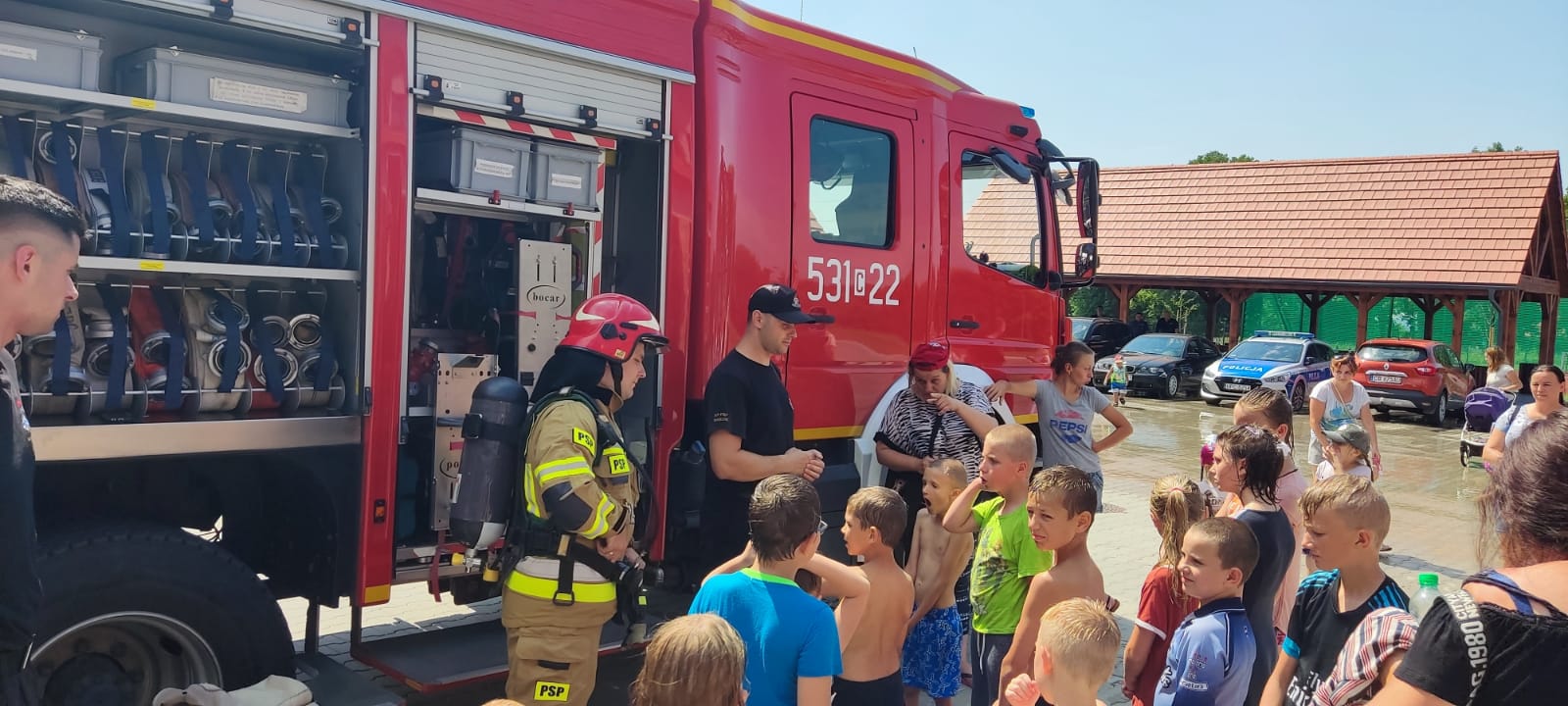 7 lipca 2021 r. Komenda Powiatowa Państwowej Straży Pożarnej w Świeciu wspólnie z Komendą Powiatową Policji w Świeciu zorganizowała na swoim terenie spotkanie podczas którego podopieczni Miejskiego Ośrodka Pomocy Społecznej w Świeciu wraz z opiekunami mogli zapoznać się z zasadami bezpiecznego wypoczynku w trakcie wakacji w ramach kampanii „Bezpieczne wakacje 2021”. Powyższe spotkanie miało na celu zwiększenie świadomości dzieci dotyczącej szeroko pojętego bezpieczeństwa oraz przybliżenie specyfiki pracy w Państwowej Straży Pożarnej, jak również pracy w Policji. Uczestnicy zostali zapoznani ze sposobami postępowania w sytuacji zagrożenia oraz prawidłowe wezwanie pomocy. Zaprezentowany został również sprzęt pożarniczy będący na wyposażeniu Komendy Powiatowej Państwowej Straży Pożarnej w Świeciu.
