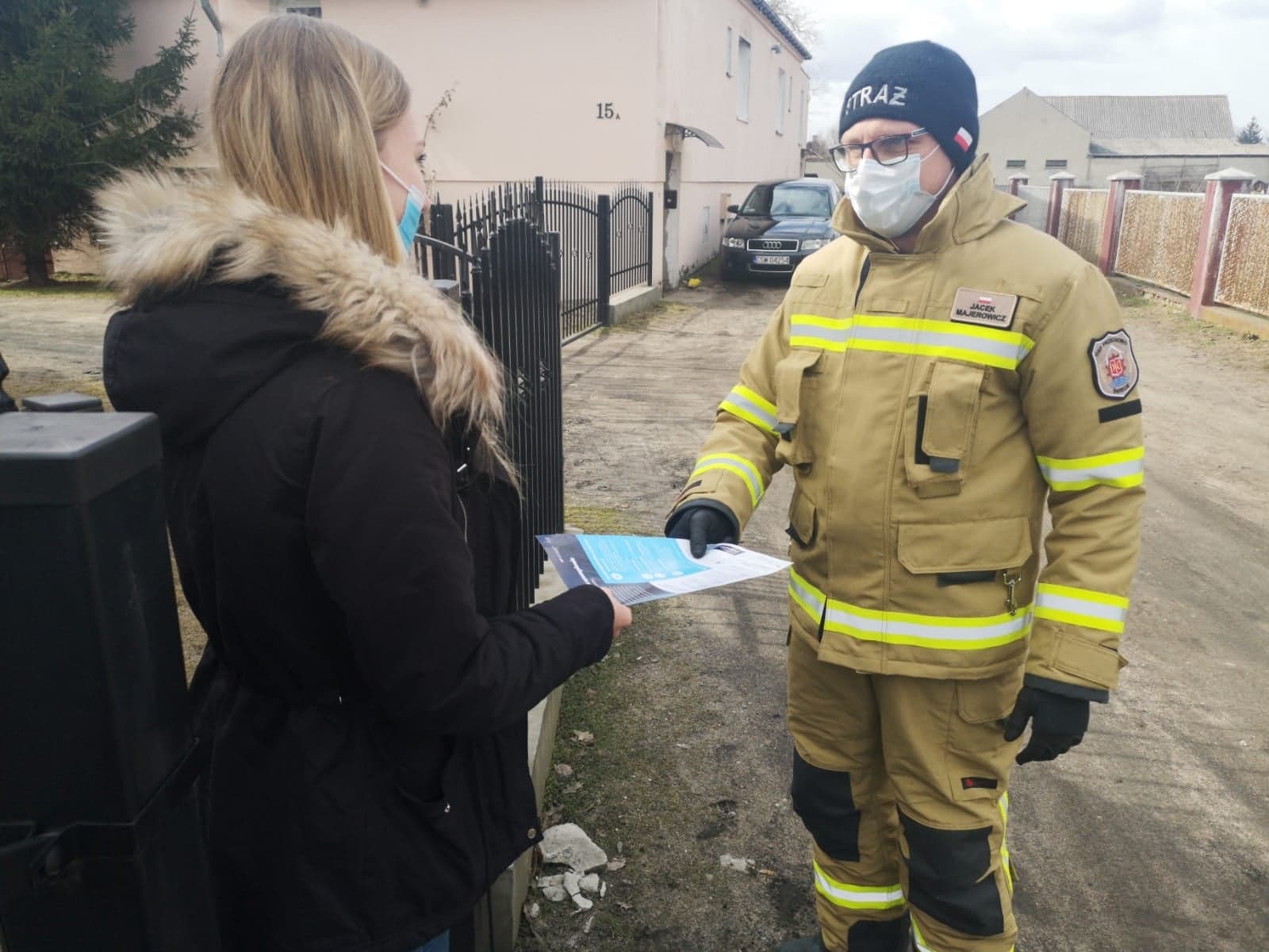 Kolportaż ulotek informacyjnych na temat profilaktyki oraz szczepień przeciwko COVID-19.
