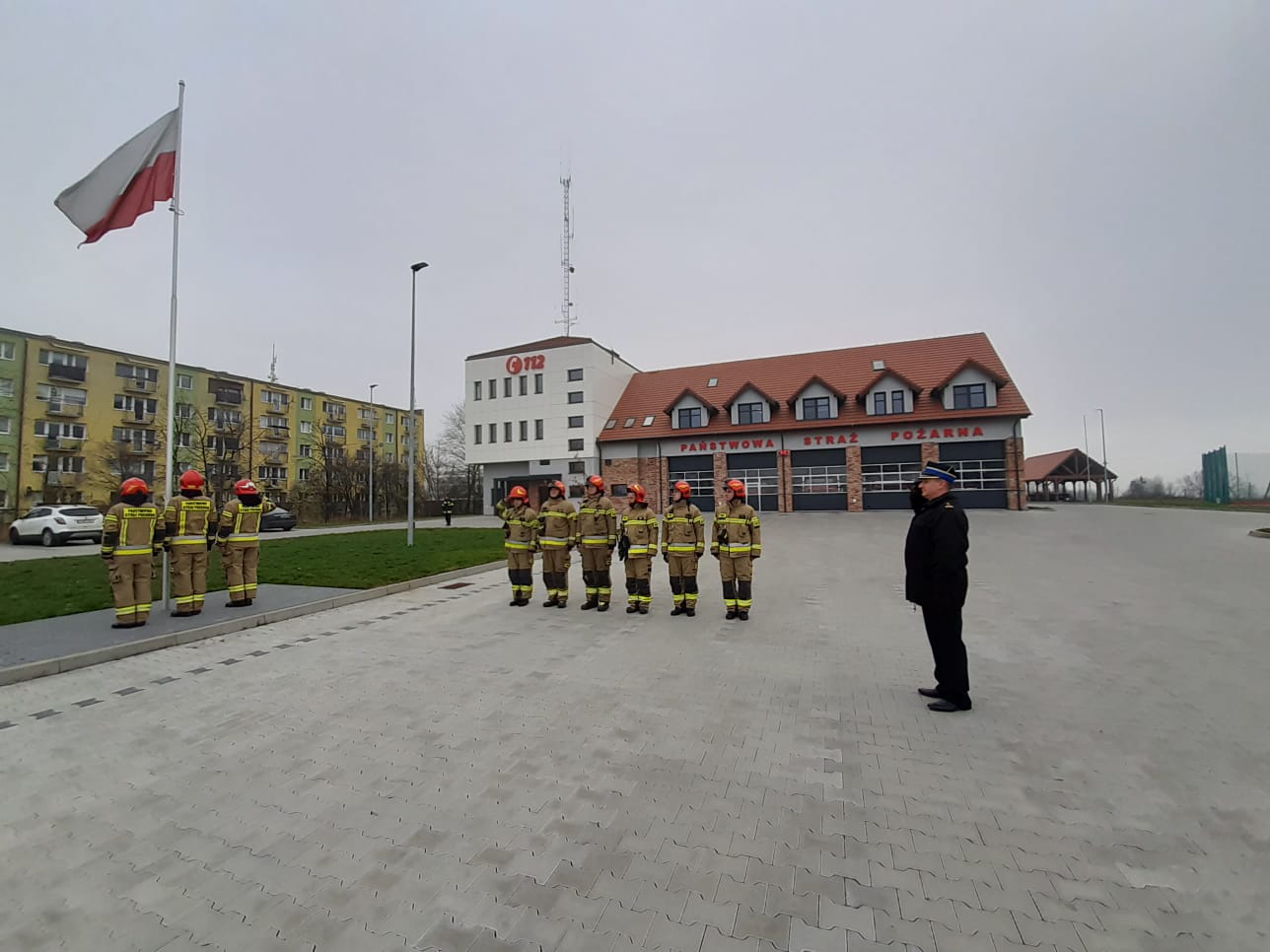 W obecności Dowódcy Jednostki Ratowniczo-Gaśniczej bryg. Pawła Puchowskiego z okazji Narodowego Święta Niepodległości uroczyście podniesiono flagę państwową i odśpiewano Hymn Narodowy.