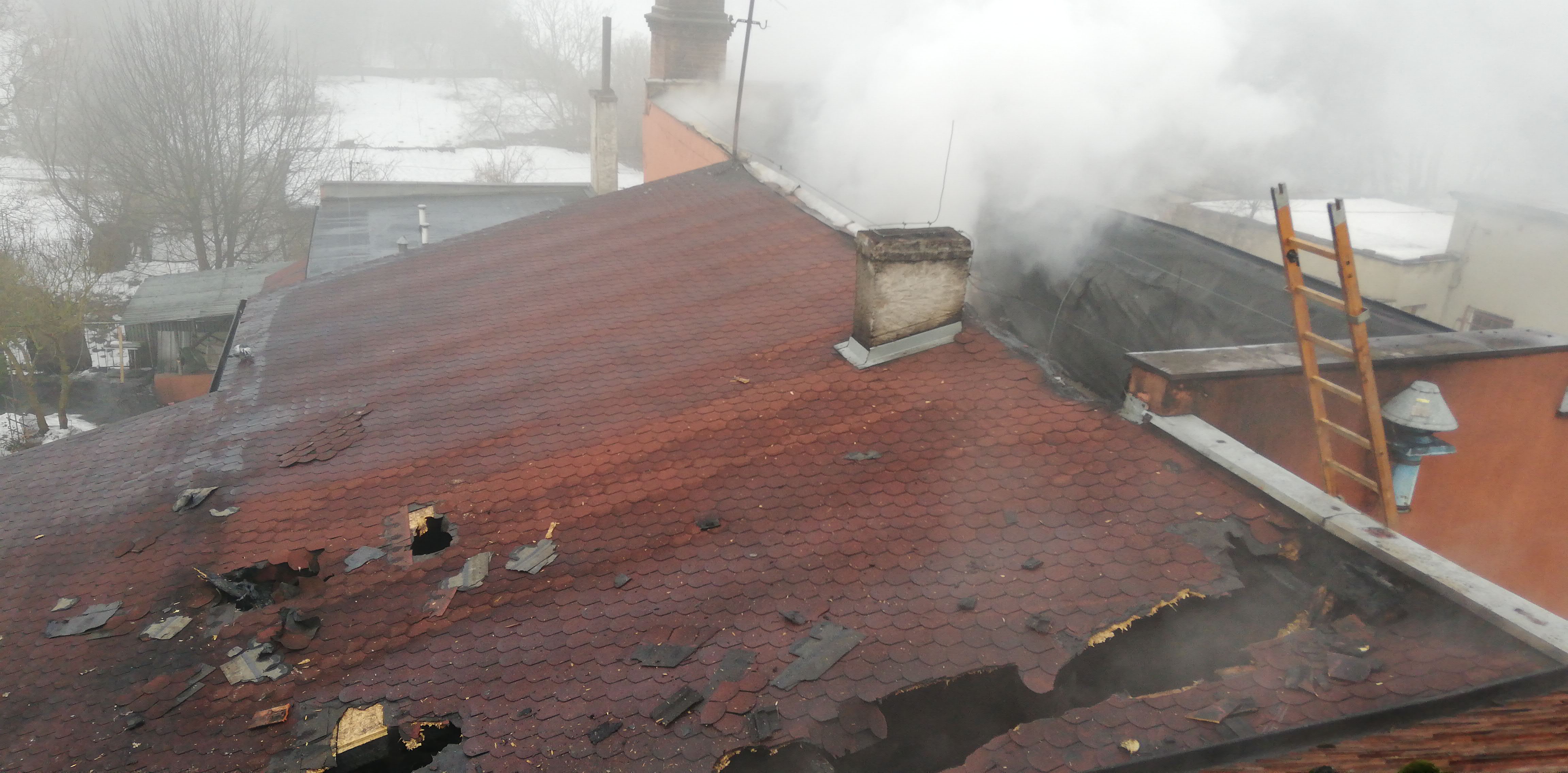 Po dojeździe na miejsce zdarzenia zastano pożar dachu budynku piekarni nad częścią przeznaczoną do wyrobu i wypieku chleba oraz przechodzący poprzez łącznik na budynek mieszkalny. Pięć osób zamieszkujących część mieszkalną ewakuowało się przed przybyciem straży. Dwie osoby uskarżające się na problemy zdrowotne zostały przebadane na miejscu zdarzenia przez ratowników medycznych. Działania straży polegały na zabezpieczeniu miejsca zdarzenia, podaniu 4 prądów wody w natarciu na palący się dach oraz wnętrze piekarni oraz jednego prądu wody w obronie od środka budynku na palące się pomieszczenie łazienki i jednego prądu z zewnątrz urządzeniem tnąco-gaszącym COBRA.