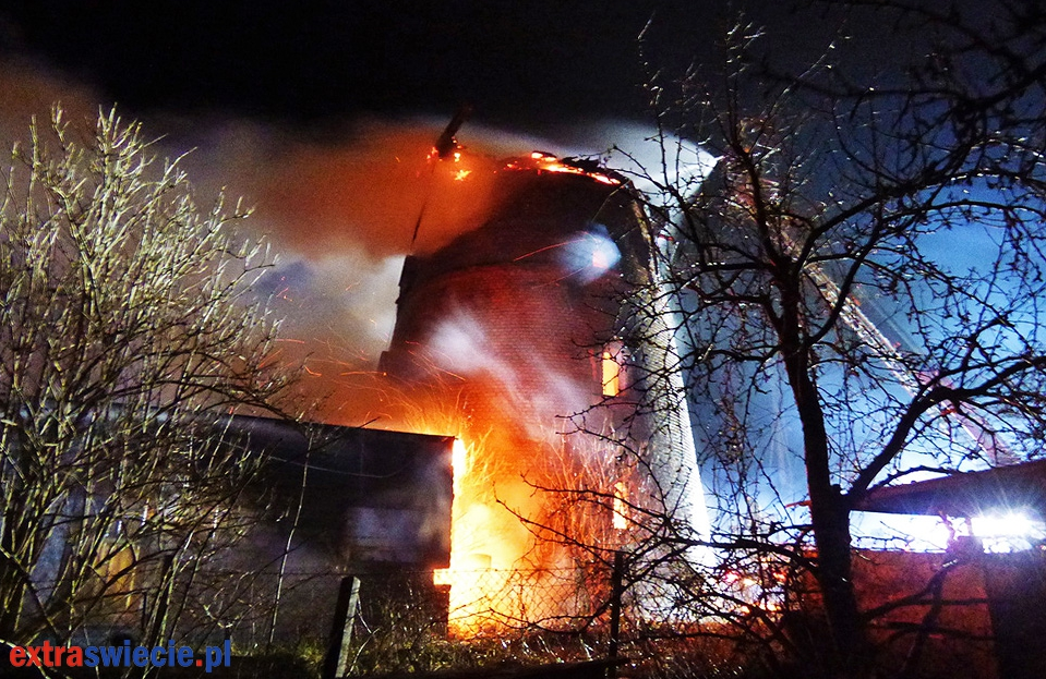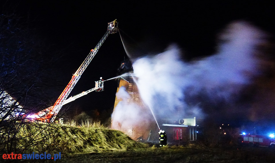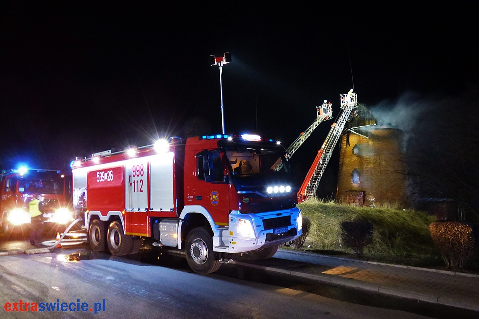 Pożar zabytkowego wiatraka w Nowem.