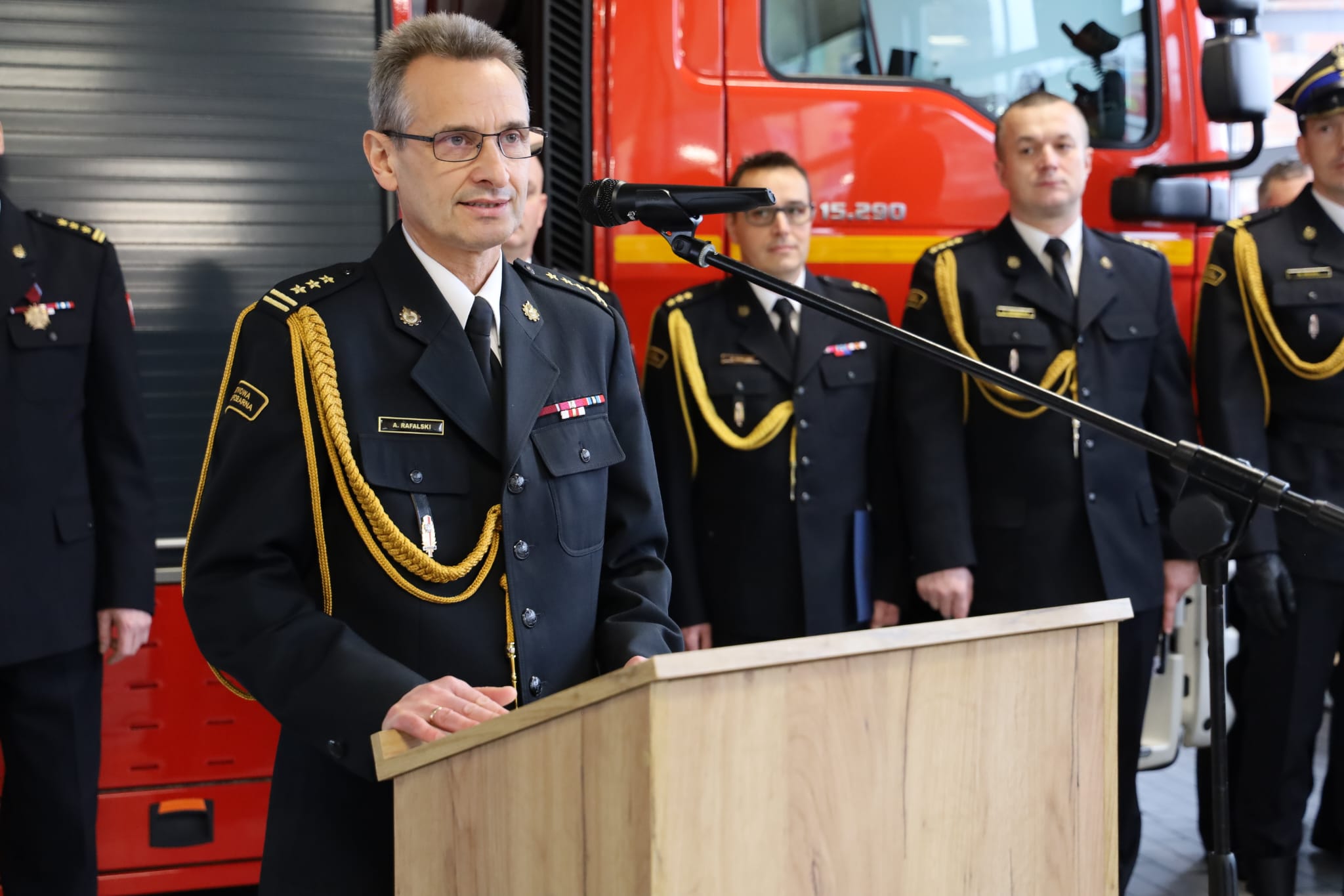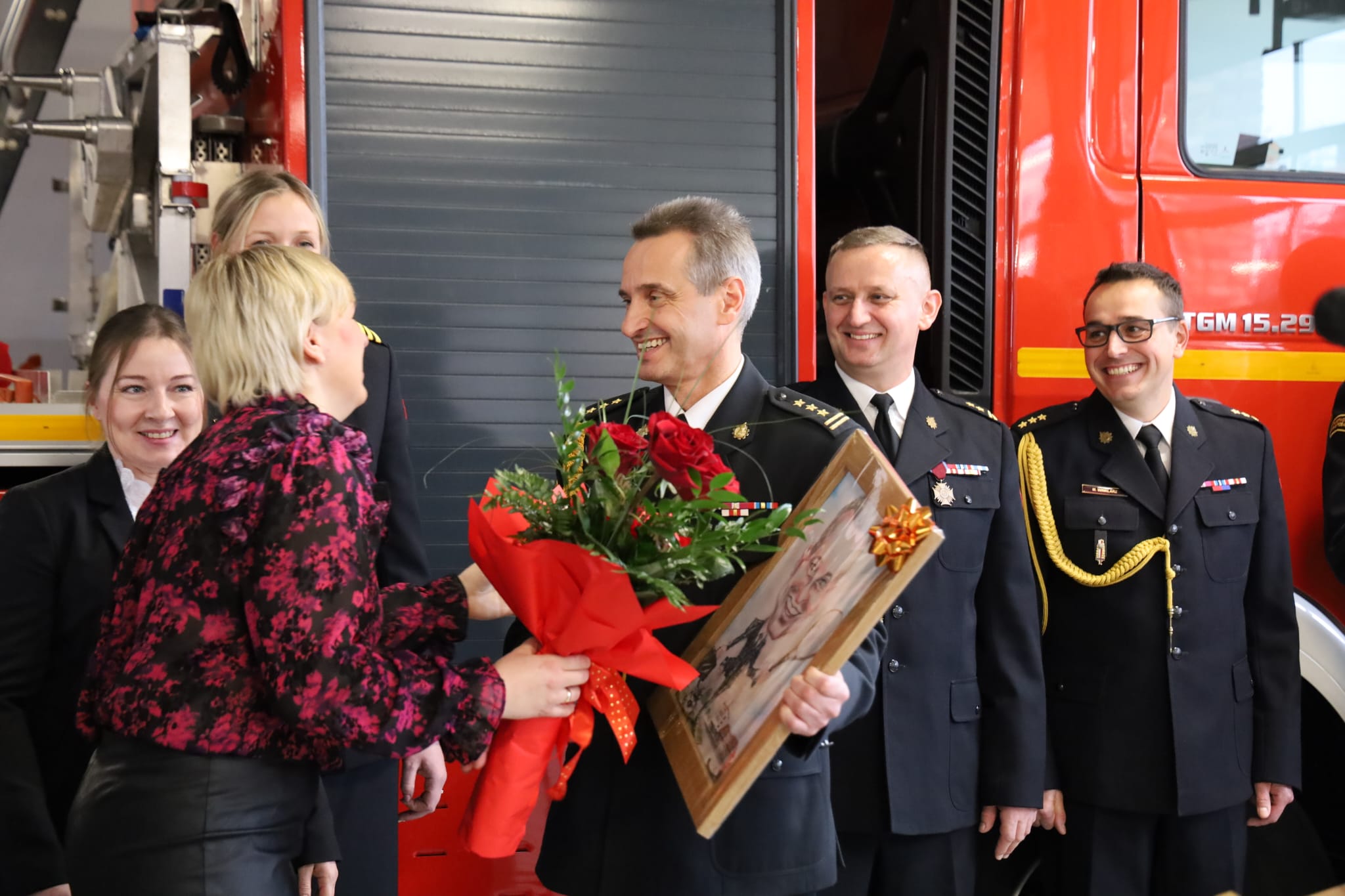 z okazji pożegnania ze służbą w Państwowej Straży Pożarnej i zdania obowiązków Zastępcy Komendanta Powiatowego PSP st. bryg. Andrzeja Rafalskiego, który z dniem 26 stycznia 2024 r. przechodzi na zaopatrzenie emerytalne.