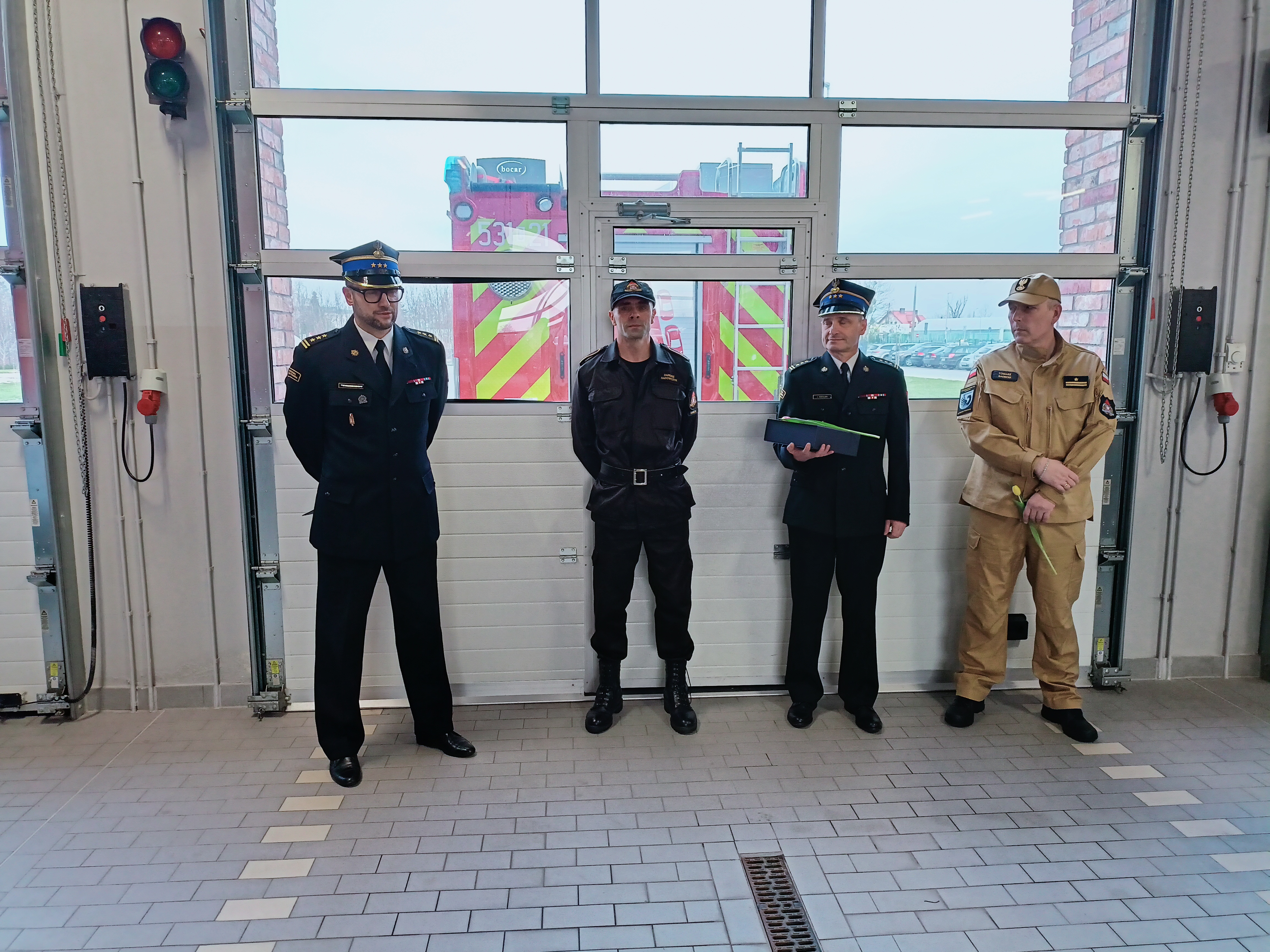Z tej okazji Komendant Powiatowy PSP w Świeciu st. bryg. Piotr Tkaczyński wygłosił okolicznościowe przemówienie w którym podsumował przebieg służby oraz podziękował za wielokrotne reprezentowanie KP PSP w Świeciu w zawodach sportowych. W ramach podziękowania wręczył pamiątkową statuetkę. Koledzy z Wydziału Operacyjno-Kontrolno-Rozpoznawczego również przekazali emerytowi prezenty.