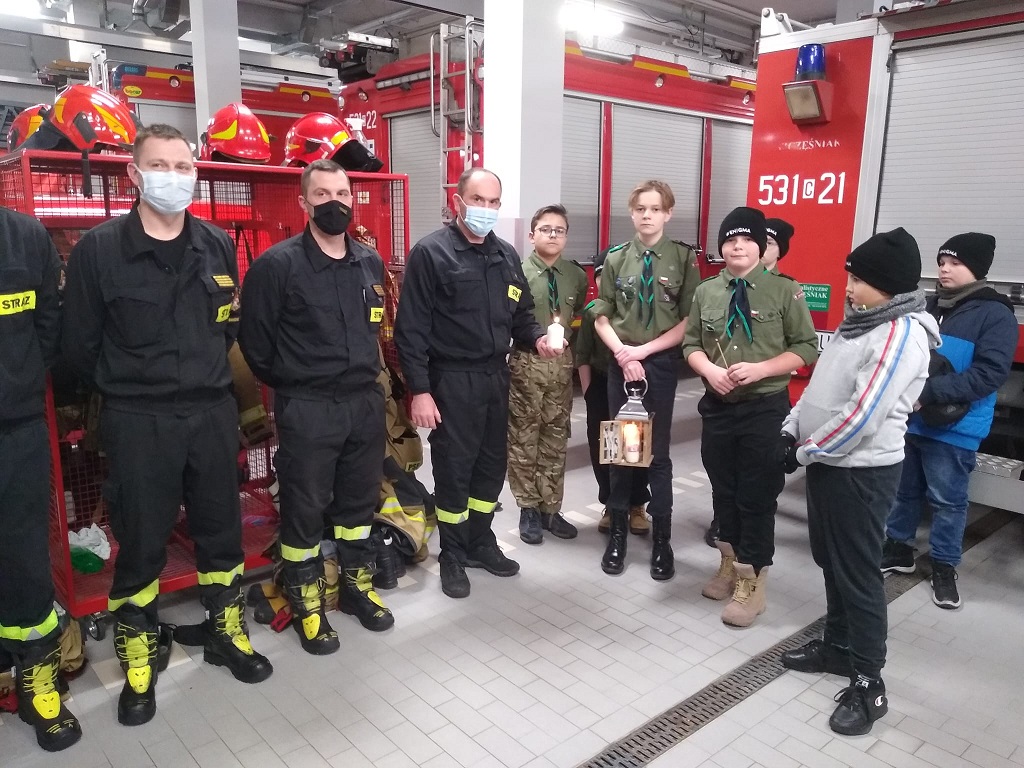 Funkcjonariusze Komendy Powiatowej PSP w Świeciu gościli w dniu 22 grudnia 2021r. harcerzy z drużyny Enigma, którzy przekazali Betlejemskie Światło Pokoju, symbol pokoju, nadziei i miłości.