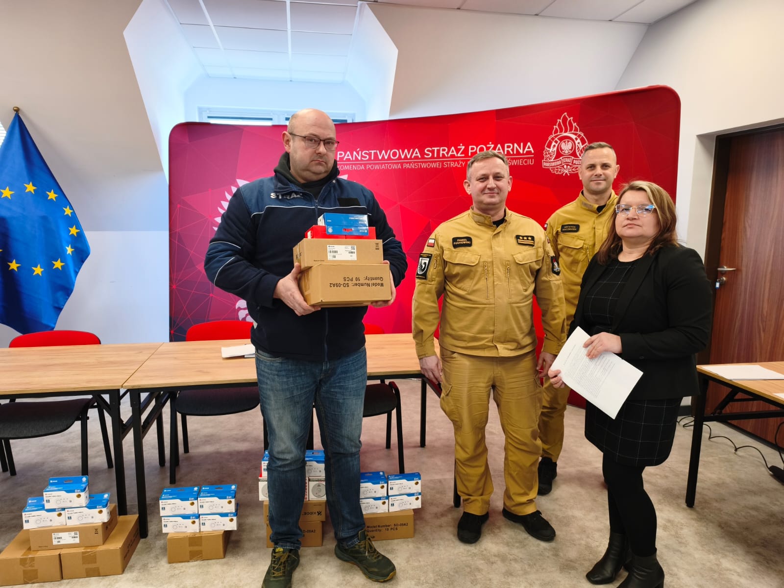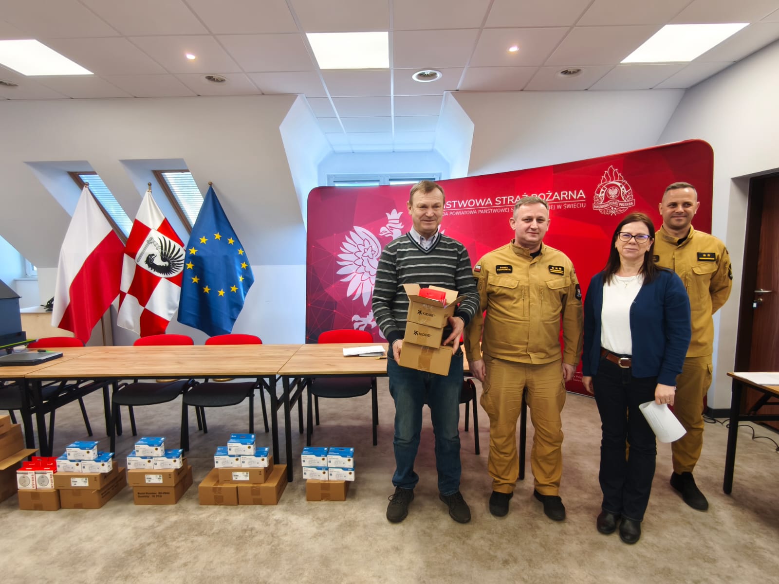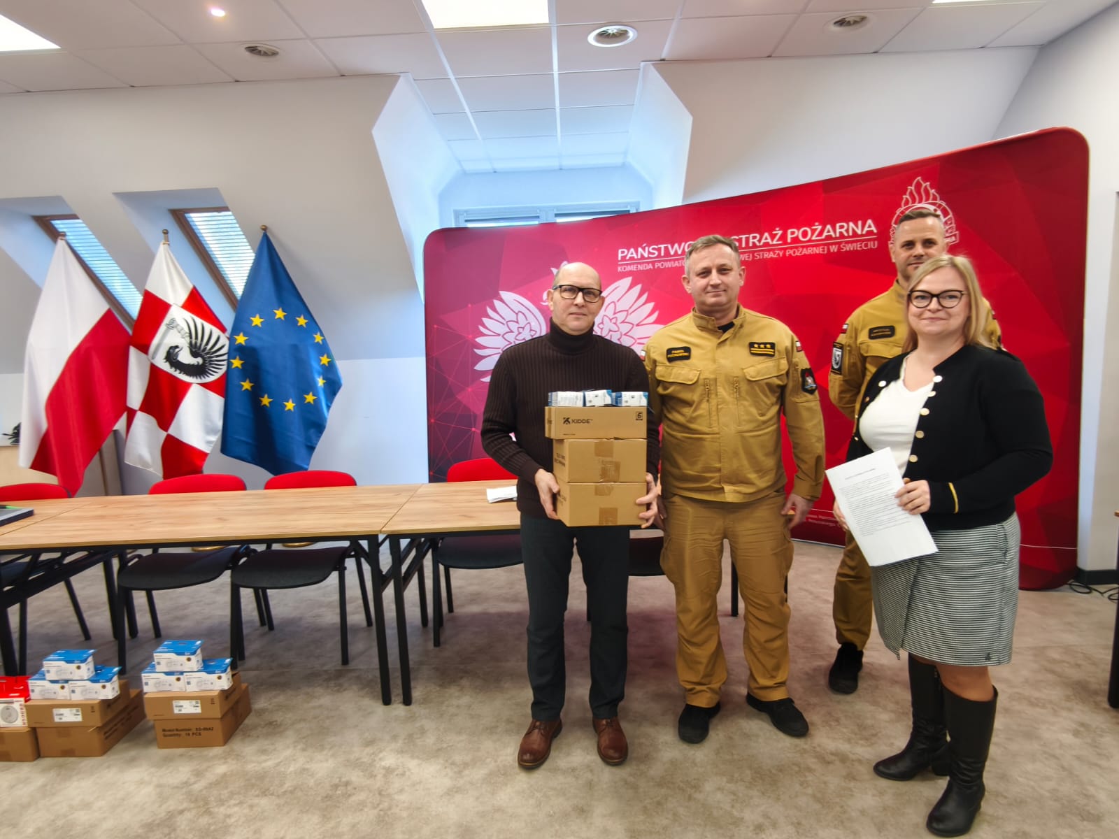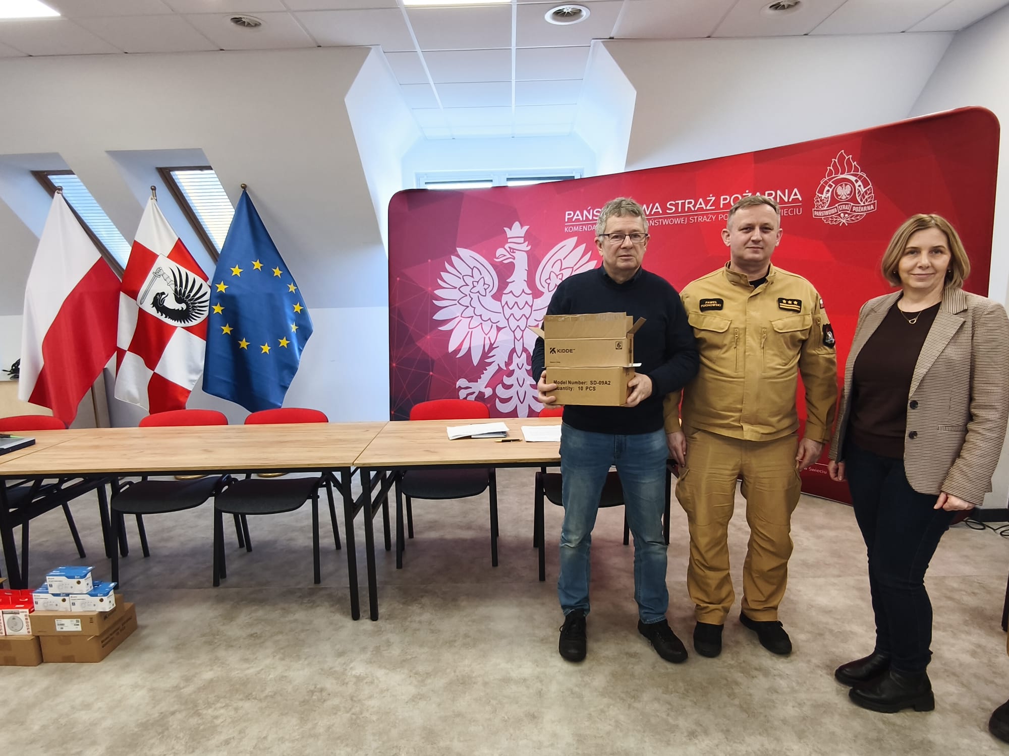 W Komendzie Powiatowej Państwowej Straży Pożarnej w Świeciu odbyło się oficjalne przekazanie czujek czadu i dymu w ramach realizacji projektu Program Ochrony Ludności i Obrony Cywilnej 2025–2026, finansowanego przez Ministerstwo Spraw Wewnętrznych i Administracji.