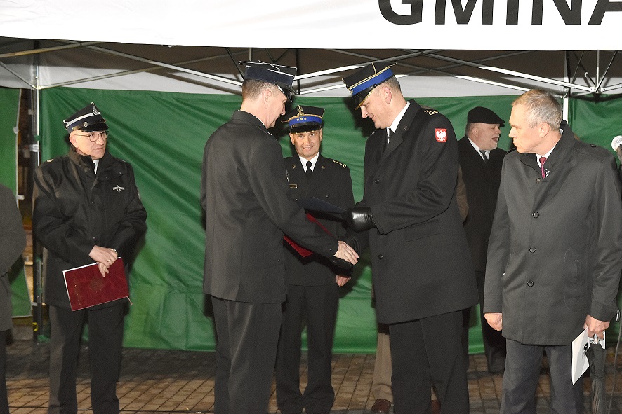W uroczystości udział wzięli II Wicewojewoda Województwa Kujawsko-Pomorskiego Radosław Kempinski, Zastępca Kujawsko-Pomorskiego Komendanta Wojewódzkiego PSP st. bryg. Sławomir Herbowski, Zastępca Komendanta Powiatowego PSP w Świeciu st. bryg. Andrzej Rafalski, Etatowy Członek Zarządu Powiatu Świeckiego Pan Józef Gawrych, Prezes Zarządu Oddziału Powiatowego ZOSP RP w Świeciu dh Janusz Gerke, Wójt Gminy Jeżewo Pan Maciej Rakowicz oraz druhowie z jednostki OSP Jeżewo oraz z sąsiednich jednostek OSP.