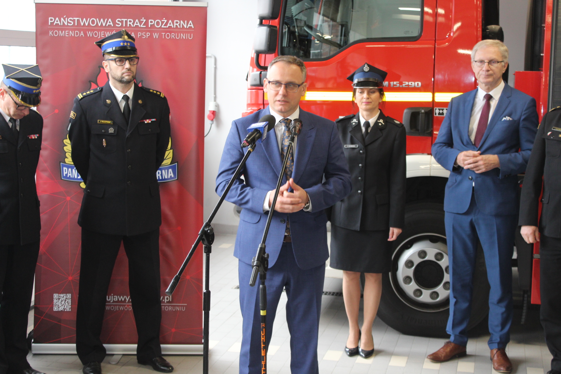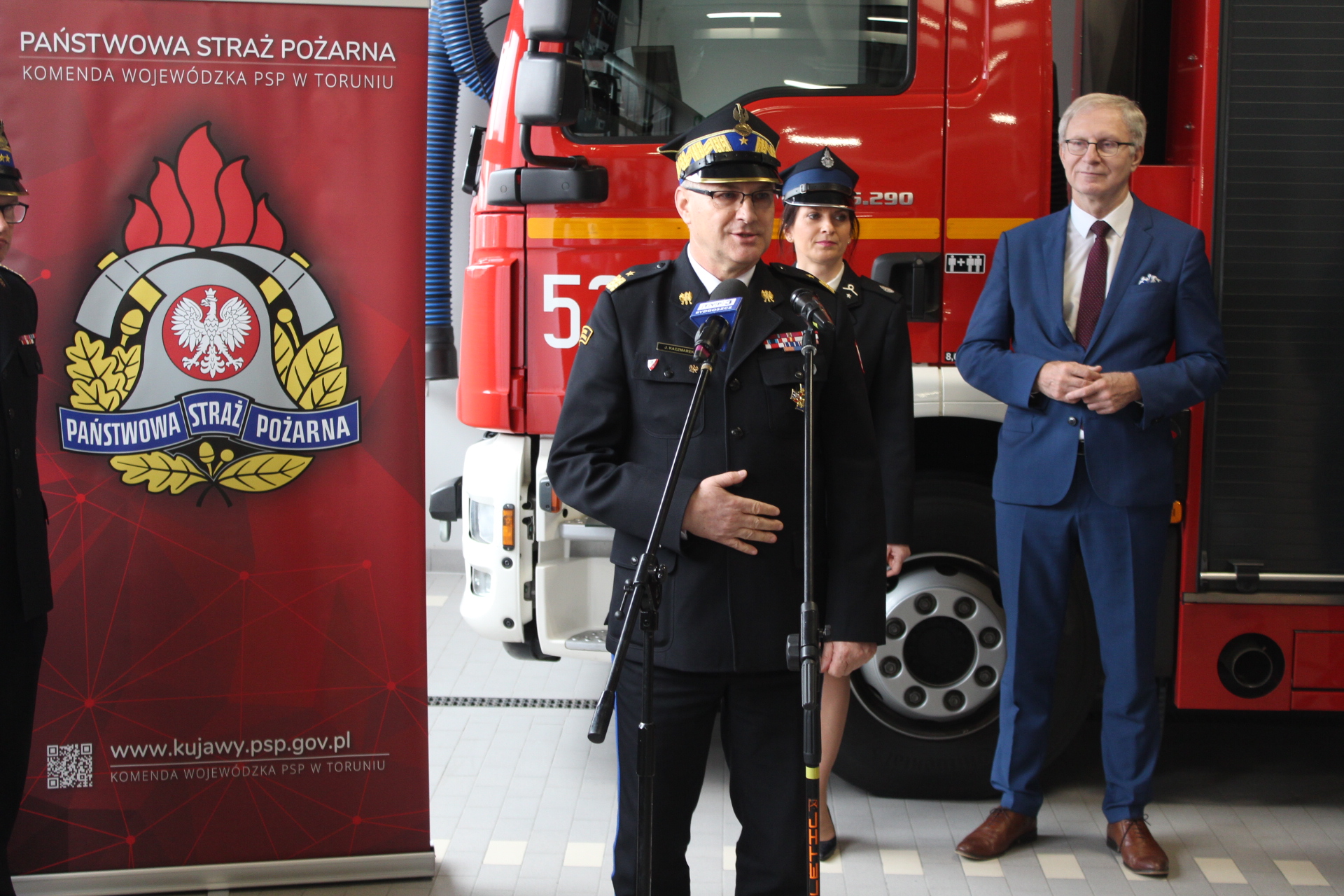 7 kwietnia 2023 roku w Komendzie Powiatowej PSP w Świeciu odbyła się uroczysta zbiórka dotycząca przekazania promes na dofinansowanie zakupu samochodów ratowniczo-gaśniczych dla jednostek OSP z województwa kujawsko-pomorskiego.