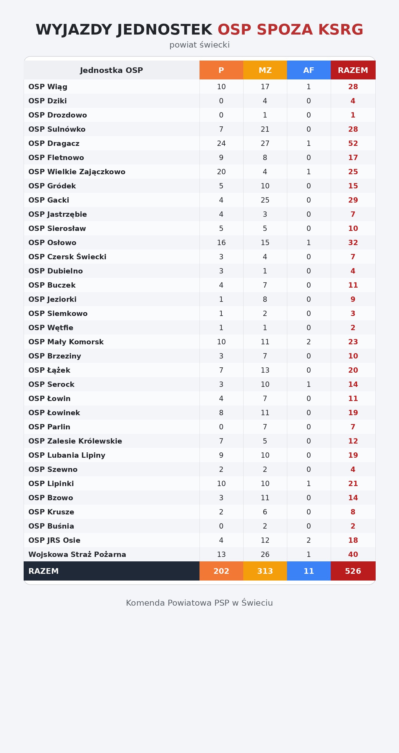 Statystyka wyjazdów w powiecie świeckim w 2025 roku