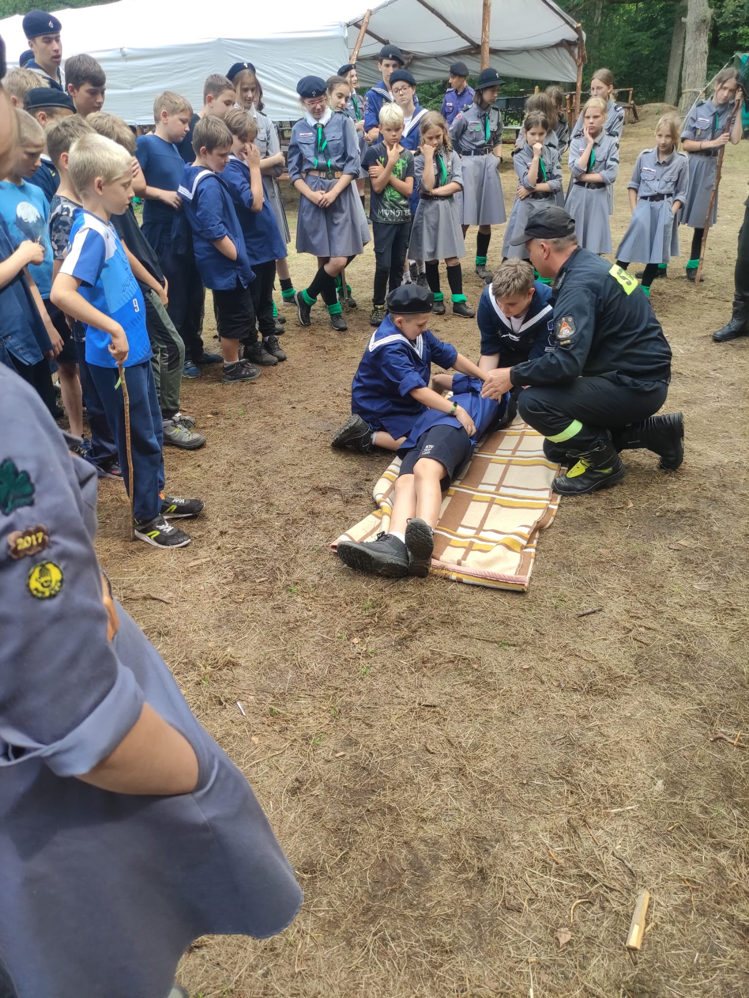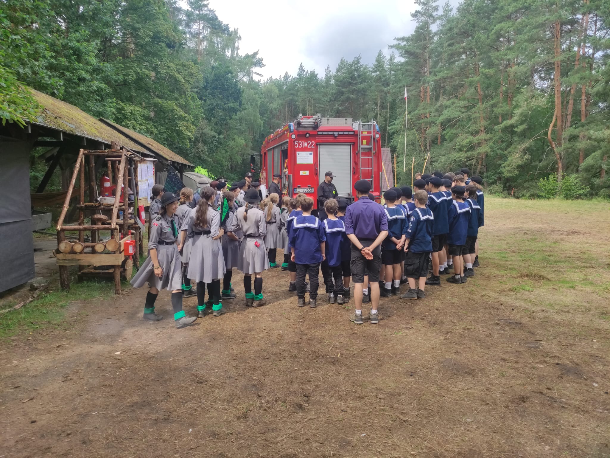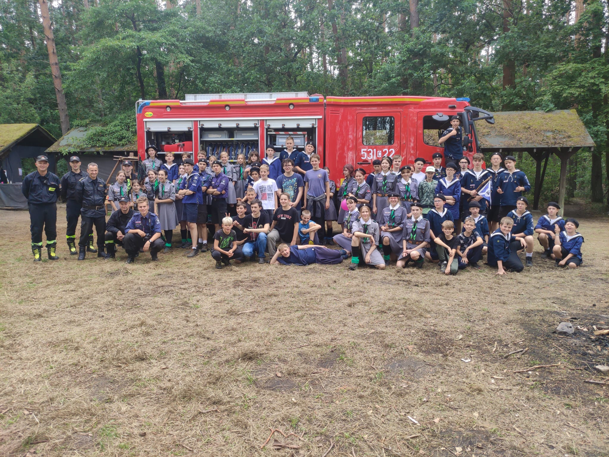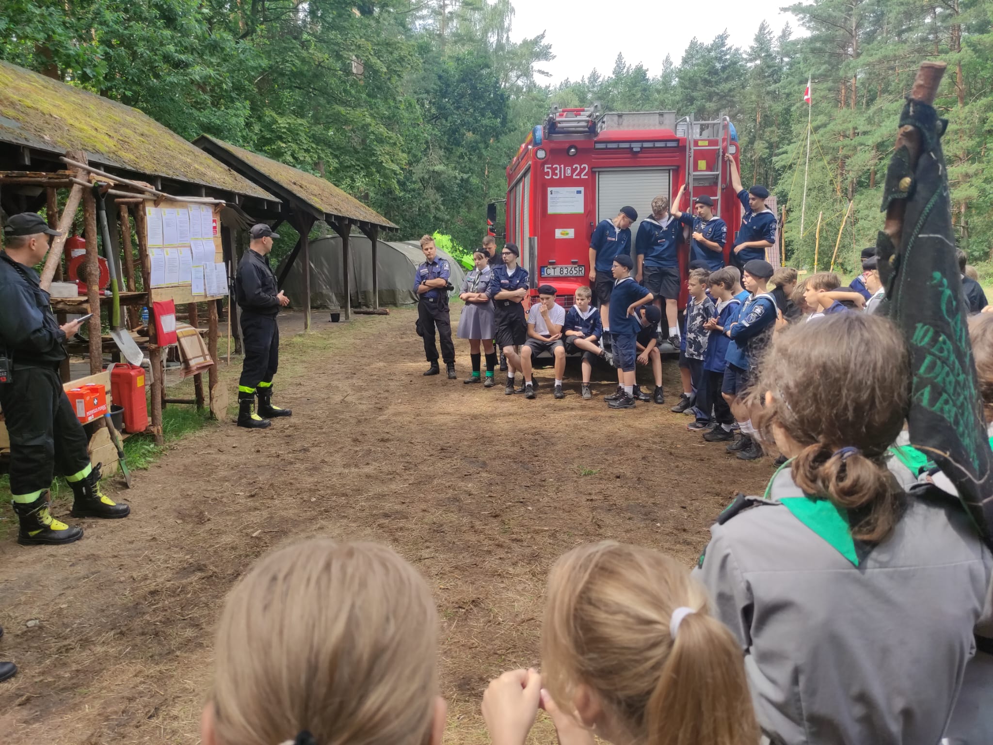 Funkcjonariusze Komendy Powiatowej Państwowej Straży Pożarnej w Świeciu systematycznie odwiedzają obozy harcerskie organizowane na terenie powiatu. W dniach 22 i 27 lipca spotkali się z harcerzami z obozu Chorągiew Stołeczna ZHR Warszawa, którzy obozują nad jeziorem Rybno na terenie Nadleśnictwa Dąbrowa oraz harcerzami z Okręgu Kujawsko-Pomorskiego ZHR którzy obozują nad Zalewem Żurskim w Nadleśnictwie Trzebciny.
