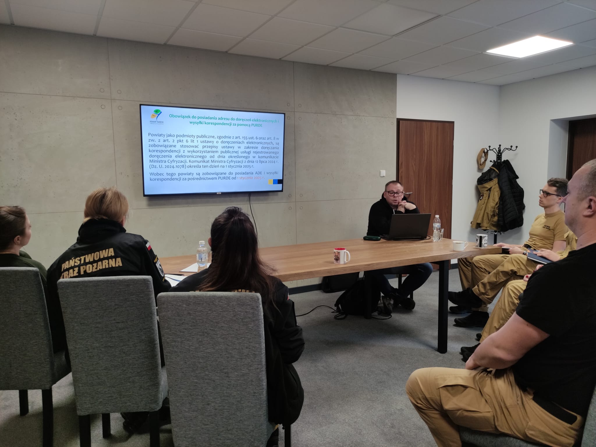 W dniu dzisiejszym w Komendzie Powiatowej PSP w Świeciu dzięki uprzejmości Starostwa Powiatowego w Świeciu przeprowadzono szkolenie z e-doręczeń dla funkcjonariuszy Komendy Powiatowej PSP w Świeciu, które poprowadził Pan Mirosław Trybuła.