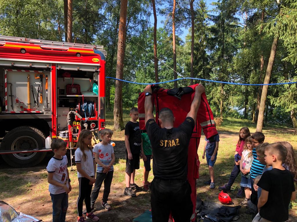 13 lipca 2021r. w ramach kampanii "Bezpieczne wakacje 2021" funkcjonariusze Komendy Powiatowej Państwowej Straży Pożarnej w Świeciu odwiedzili obóz harcerski Chorągwi Stołecznej ZHP, Szczep 23 ZDHiZ „ Pomarańczarnia”, którzy obozują nad jeziorem Deczno na terenie Nadleśnictwa Dąbrowa.