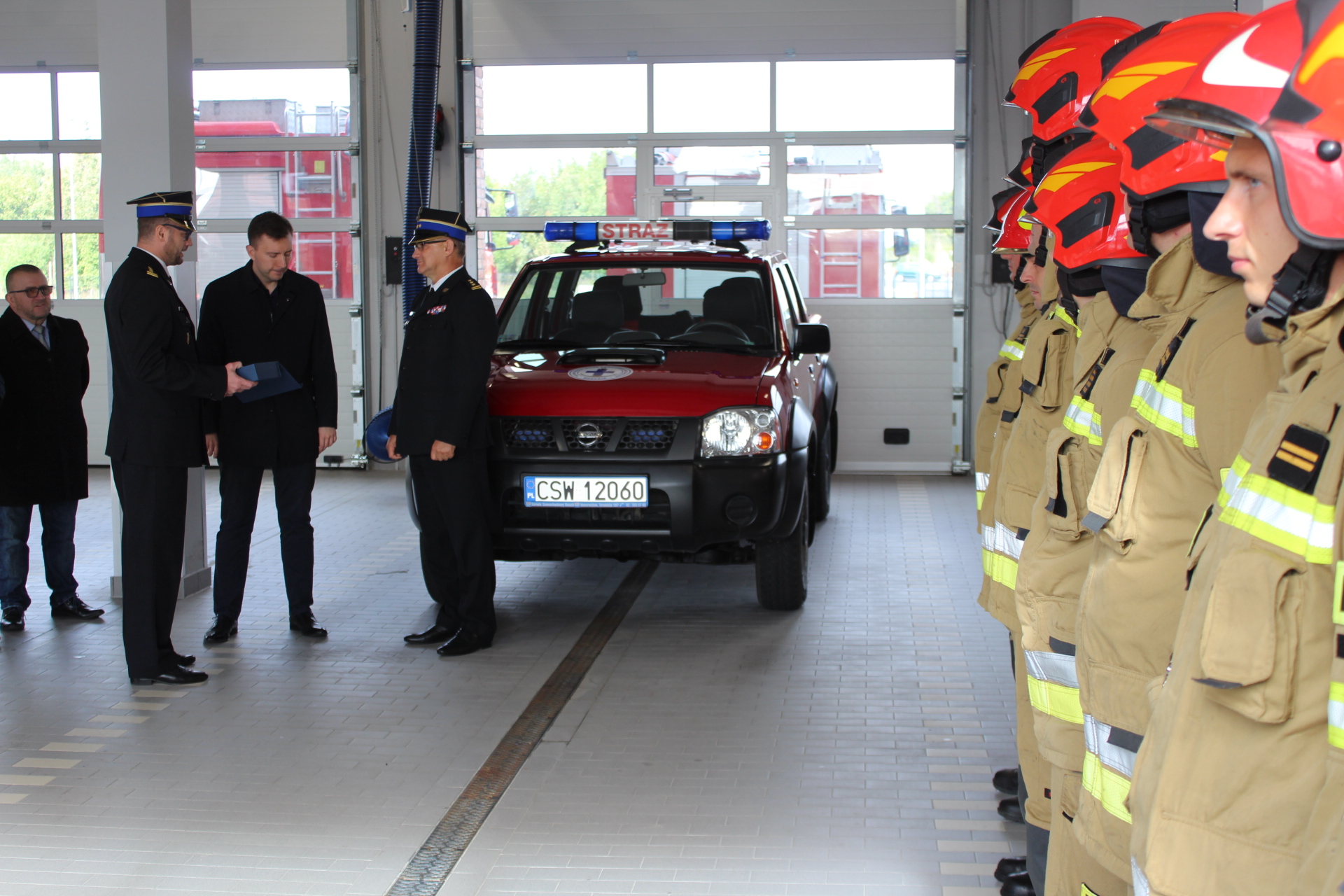 24 września 2021 r. siedzibę Komendy Powiatowej Państwowej Straży Pożarnej w Świeciu wizytował Pan Minister Łukasz Schreiber oraz Kujawsko-Pomorski Komendant Wojewódzki Państwowej Straży Pożarnej st. bryg. Jacek Kaczmarek. Była to doskonała okazja do przekazania samochodu operacyjnego z Państwowej Straży Pożarnej dla Wdeckiego Wodnego Ochotniczego Pogotowia Ratunkowego. Kluczyki z rąk Pana Ministra odebrał Prezes Wdeckiego Wodnego Ochotniczego Pogotowia Ratunkowego Pan Witold Guber. Dzięki nowemu samochodowi ratownicy wodni będą mogli skuteczniej i szybciej podjąć działania na wodzie w przypadku zagrożenia życia i zdrowia osób przebywających na terenie powiatu świeckiego oraz tucholskiego. Spotkanie było okazją do przekazania przez Komendanta Powiatowego Państwowej Straży Pożarnej w Świeciu st. bryg. Piotra Tkaczyńskiego na ręce Pana Ministra podziękowania za wkład i pomoc w dokończeniu budowy obiektu Komendy Powiatowej Państwowej Straży Pożarnej w Świeciu.