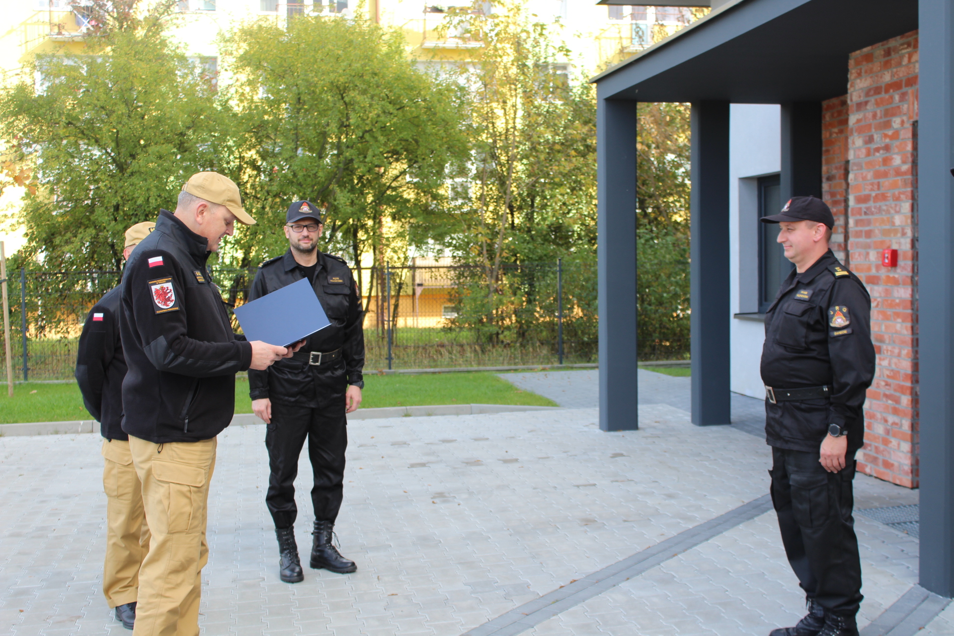 13 października 2021r. siedzibę Komendy Powiatowej Państwowej Straży Pożarnej w Świeciu wizytował Zastępca Kujawsko-Pomorskiego Komendanta Wojewódzkiego Państwowej Straży Pożarnej st. bryg. Sławomir Herbowski wraz z Zastępcą Łódzkiego Komendanta Wojewódzkiego Państwowej Straży Pożarnej st. bryg. Zbigniewem Łyszkowicz. Komendant Powiatowy Państwowej Straży Pożarnej w Świeciu st. bryg. Piotr Tkaczyński zaprezentował gościom obiekty Komendy oraz pojazdy i sprzęt będące na jej wyposażeniu. Spotkanie było również okazją do wręczenia Dowódcy JRG bryg. Pawłowi Puchowskiemu wyróżnienia przyznanego przez Kujawsko-Pomorskiego Komendanta Wojewódzkiego Państwowej Straży Pożarnej st. bryg. Jacka Kaczmarka za zaangażowanie i wzorowe wykonywanie zadań służbowych.