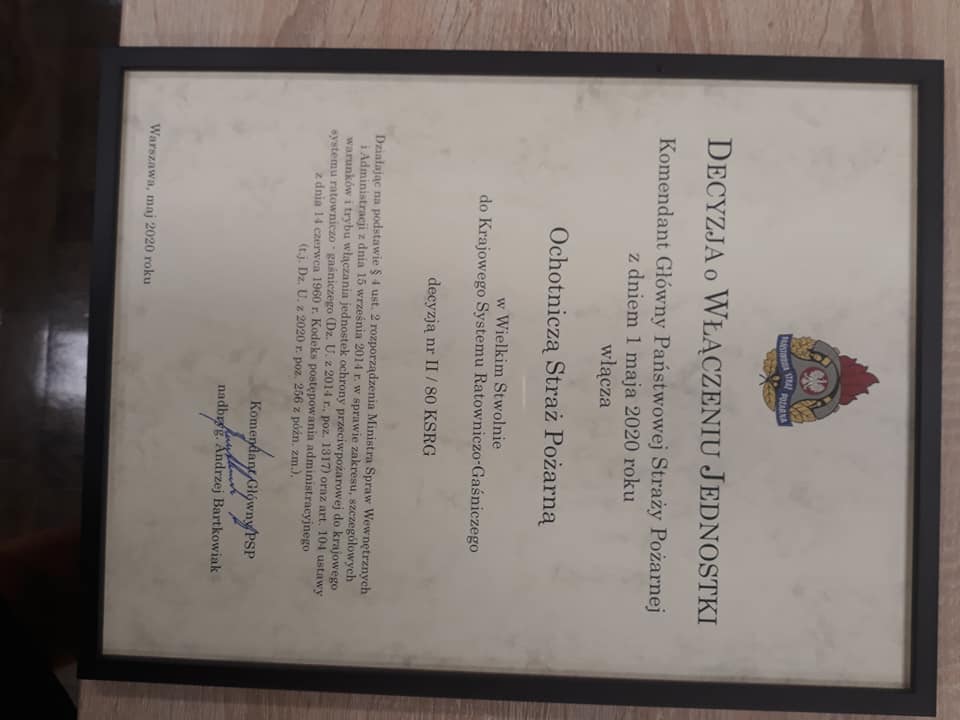 Włączenie jednostki OSP Wielkie Stwolno do krajowego systemu ratowniczo-gaśniczego