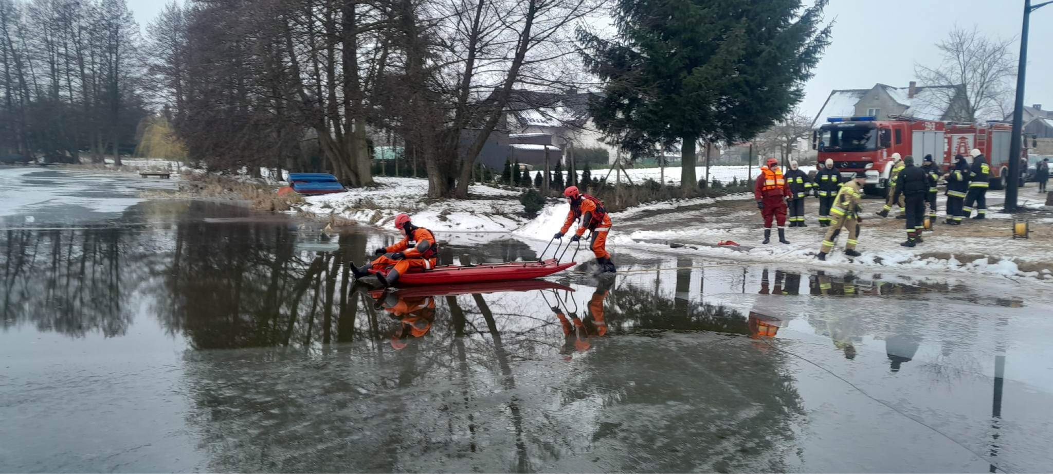 Funkcjonariusze z Komendy Powiatowej Państwowej Straży Pożarnej w Świeciu wspólnie z druhami z jednostek OSP z terenu Gminy Świekatowo ćwiczyli z zakresu ratownictwa lodowego na jeziorze Zaleskim. Omówiono zasady działania na zamarzniętych akwenach oraz udzielania pierwszej pomocy osobom poszkodowanym. W trakcie zajęć wykorzystano specjalistyczny sprzęt ratowniczy będący na wyposażana jednostek. Systematyczne ćwiczenia z zakresu ratownictwa lodowego pozwalają na eliminacje błędów, których uniknięcie w rzeczywistych zdarzeniach zapewnia skuteczność podjętych działań ratowniczych.
