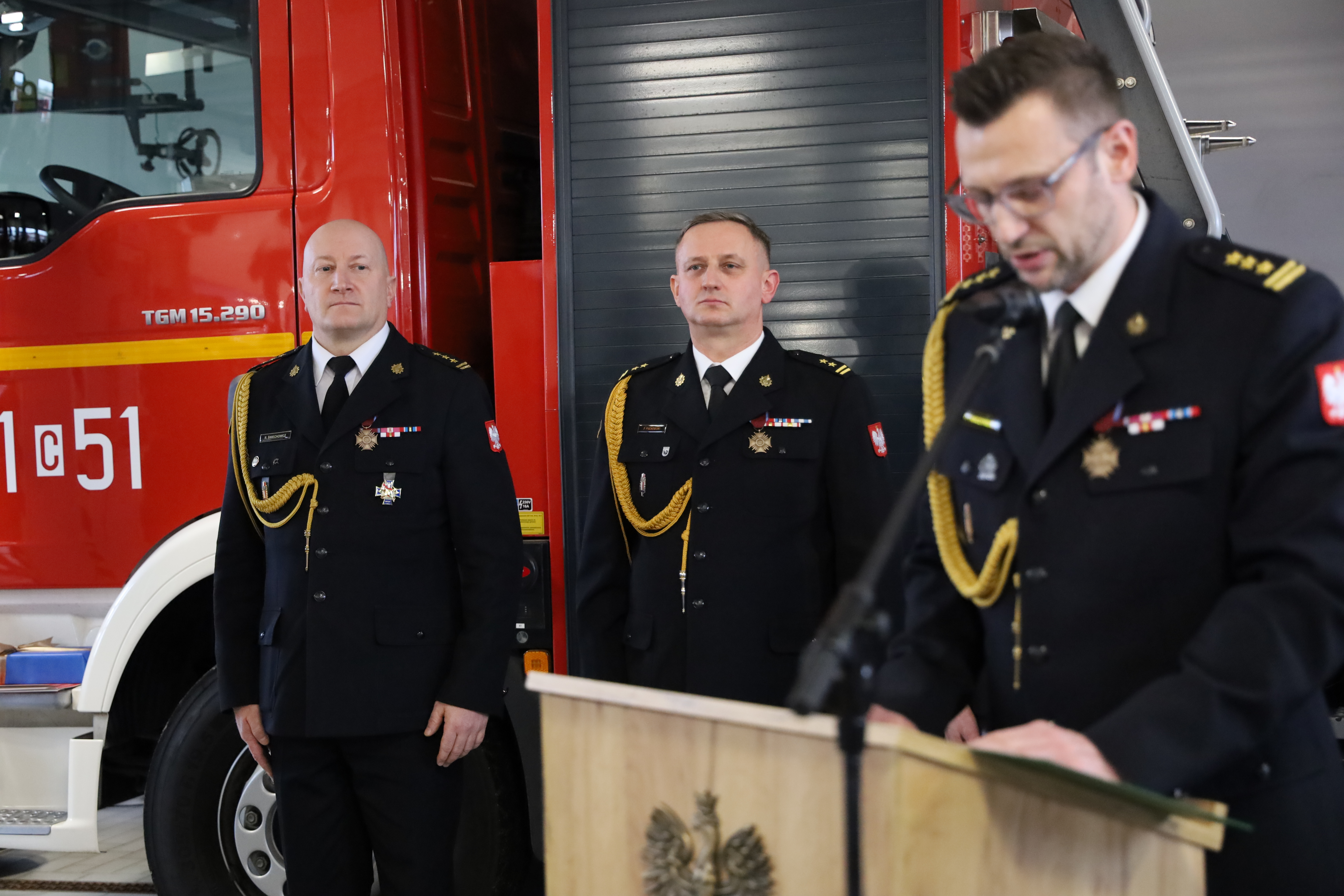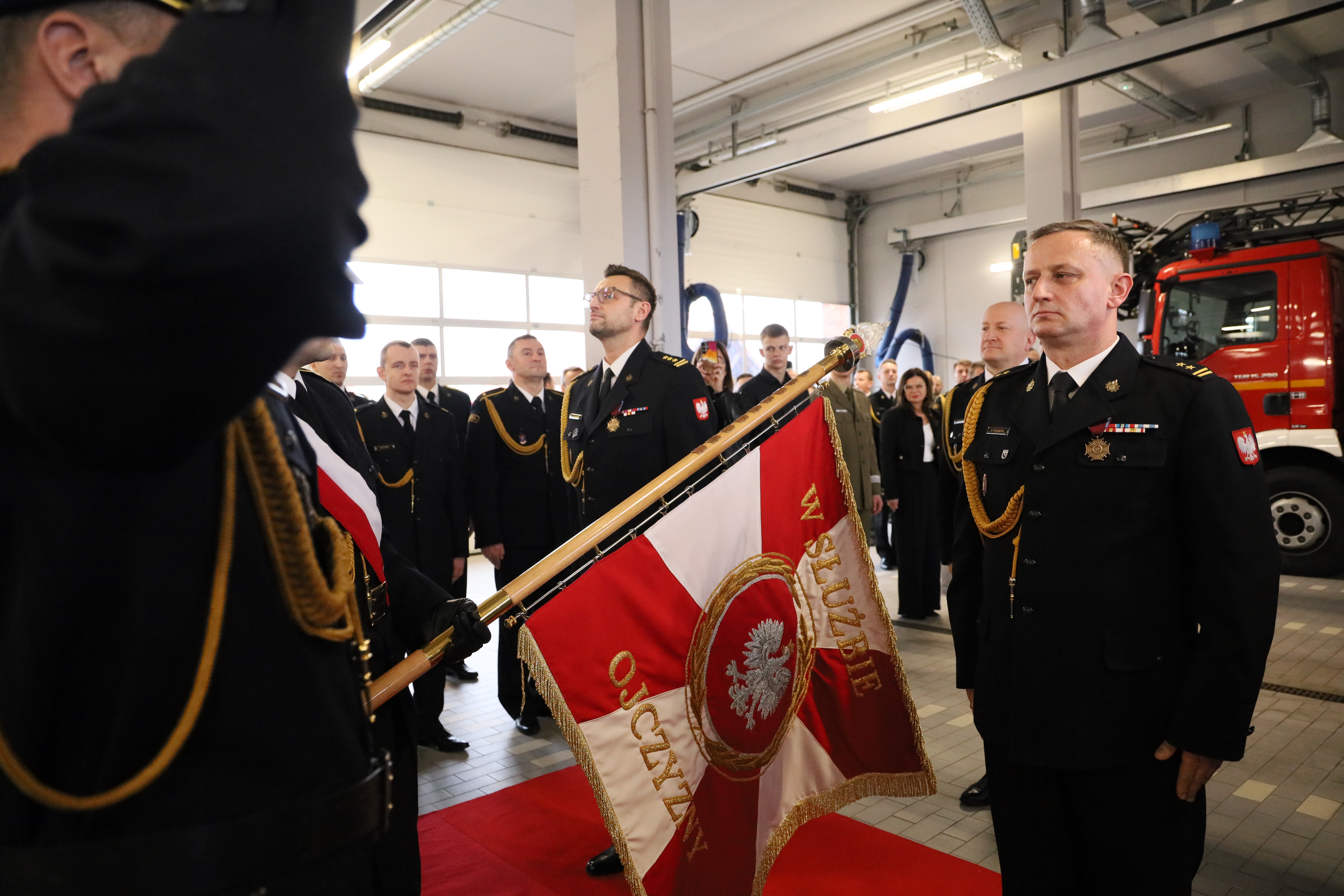 W dzisiejszej uroczystości wzięli również udział Zastępca Kujawsko-Pomorskiego Komendanta Wojewódzkiego Państwowej Straży Pożarnej st. bryg. Marek Rusoń a także komendanci powiatowi i miejski PSP z terenu woj. kujawsko-pomorskiego.