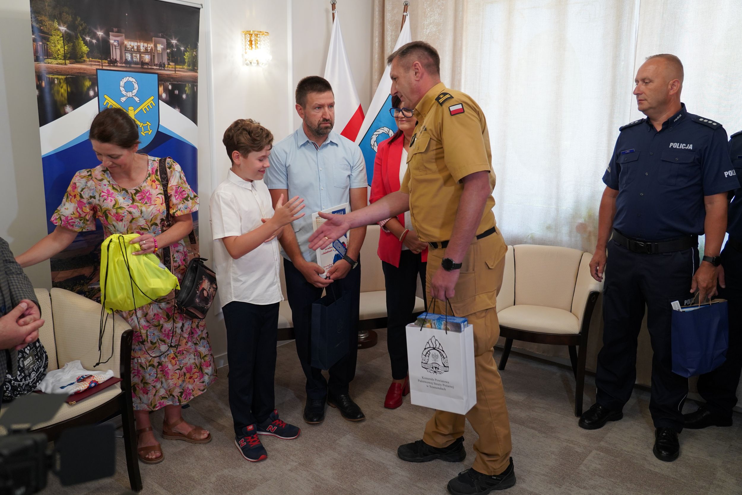 Wychowawczyni chłopca, koleżanki i koledzy z klasy uroczyście wręczyli mu prezenty i pogratulowali niezwykłej odwagi.