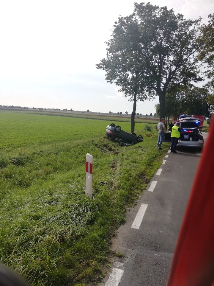 W piątek, 11 września o godz. 9.58 do dyżurnego Stanowiska Kierowania Państwowej Straży Pożarnej w Szamotułach wpłynęło zgłoszenie z Centrum Powiadamiania Ratunkowego o dachowaniu samochodu osobowego oraz jednej osobie poszkodowanej w miejscowości Bobulczyn gm. Ostroróg