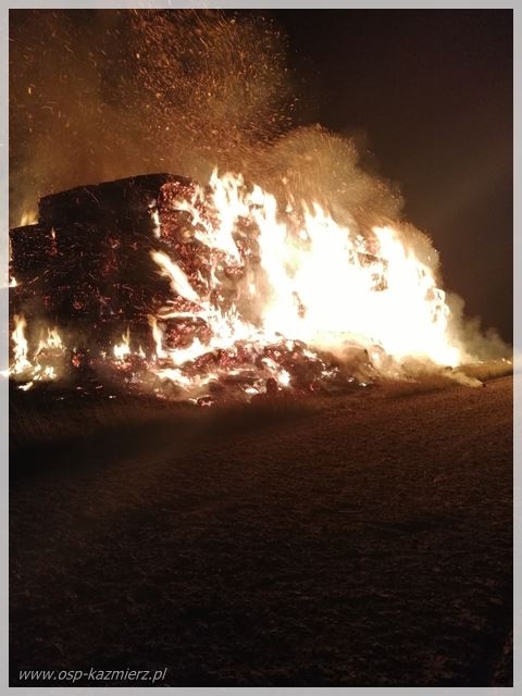 Po dojeździe na miejsce zdarzenia strażacy zastali stóg z balotami słomy, który cały objęty był ogniem.