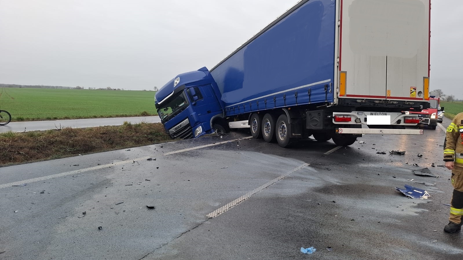 Ciężarówka zderzyła się z samochodem osobowym oraz busem na DK92