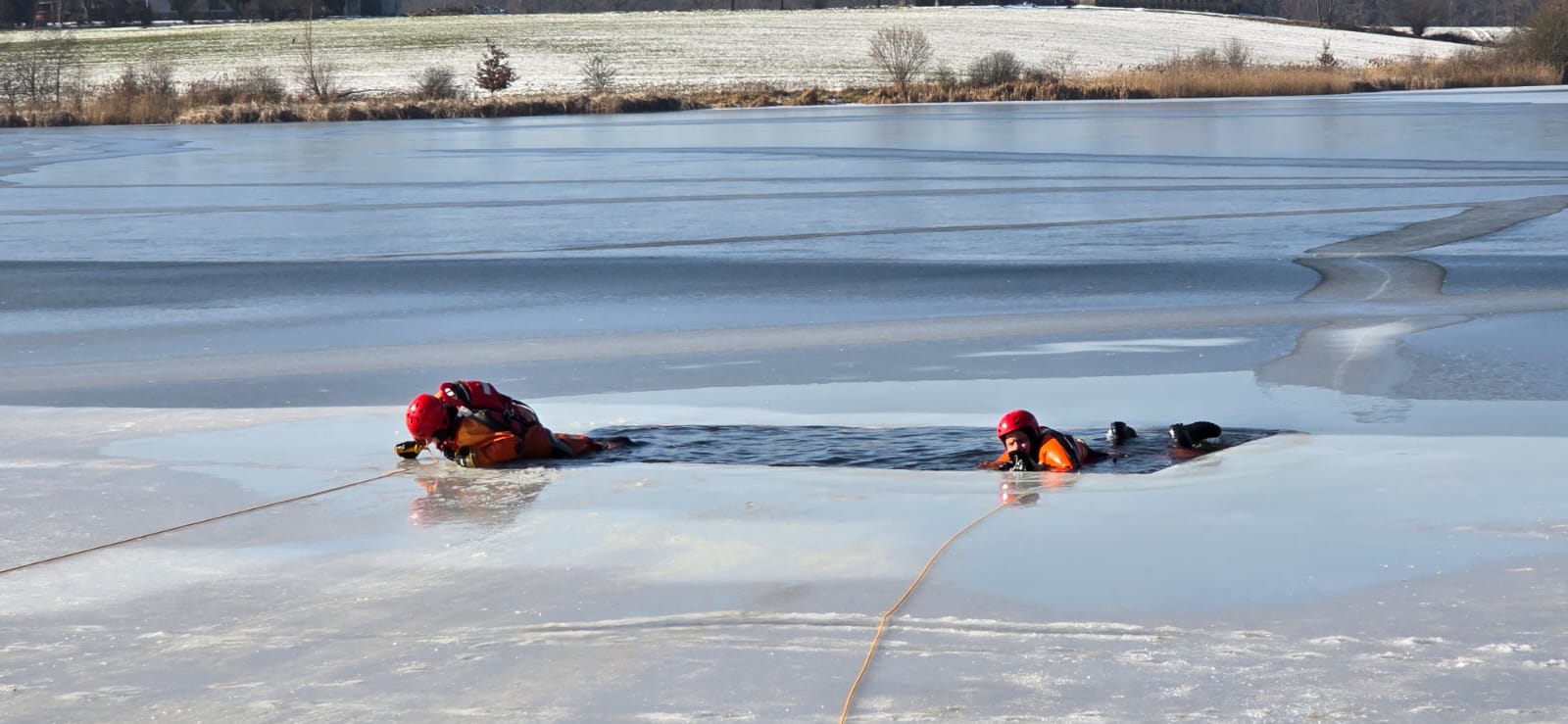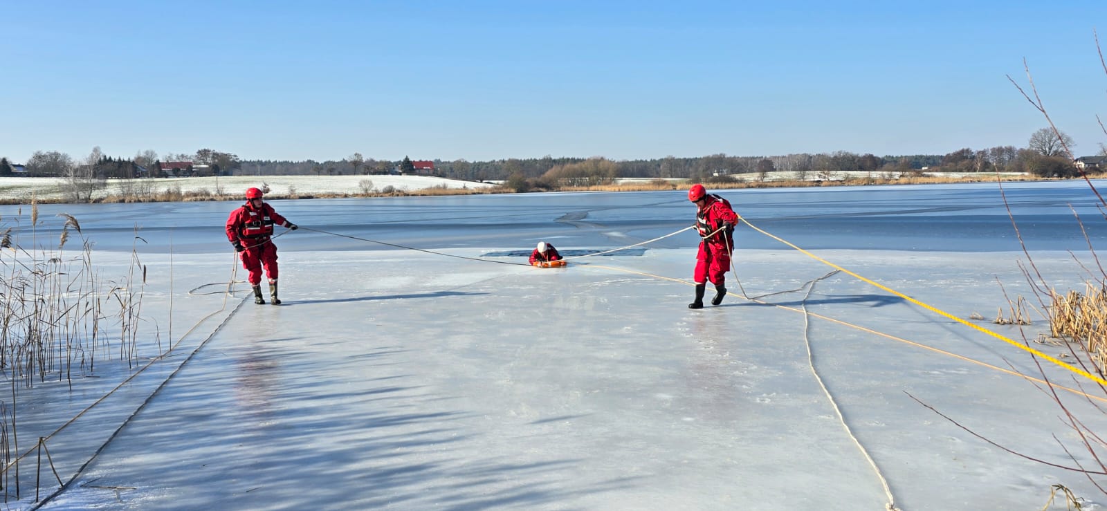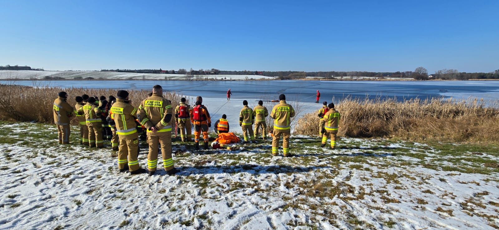 Panujące od kilku dni mrozy sprawiły, że zbiornik wodny na którym prowadzone były ćwiczenia pokrył się lodem i doskonale odzwierciedlał warunki, jakie mogą wystąpić podczas akcji ratowniczej.