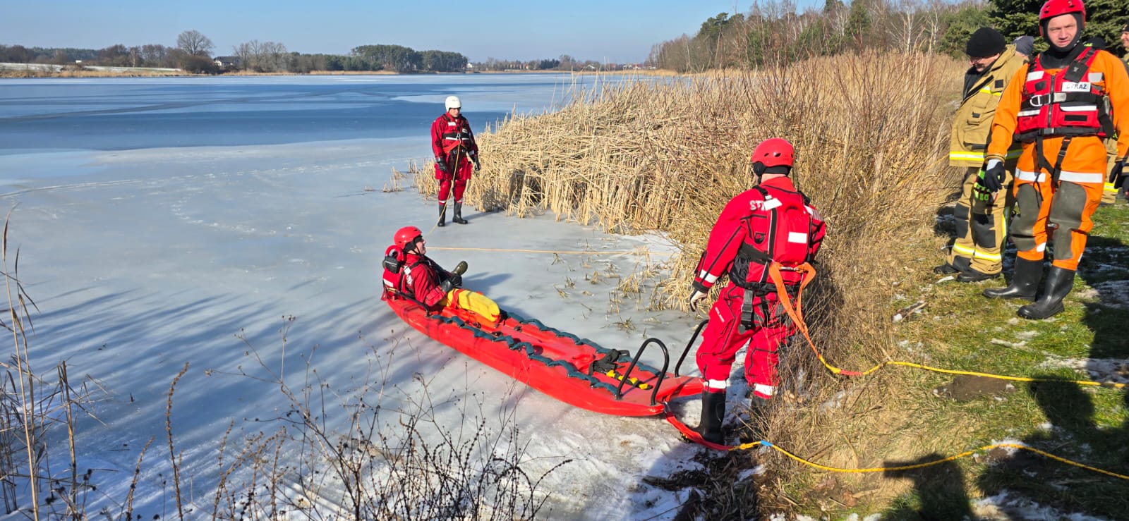 Korzystając ze sprzyjających warunków pogodowych w sobotę, 22 lutego strażacy JRG Szamotuły przeprowadzili ćwiczenia z zakresu ratownictwa lodowego wspólnie z jednostkami Ochotniczych Straży Pożarnych.