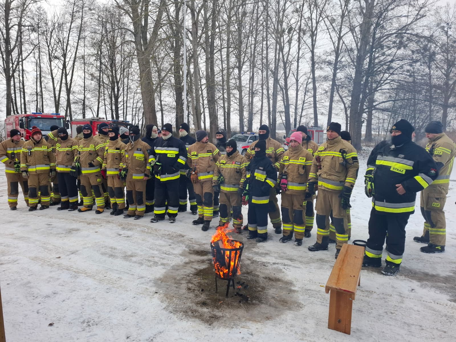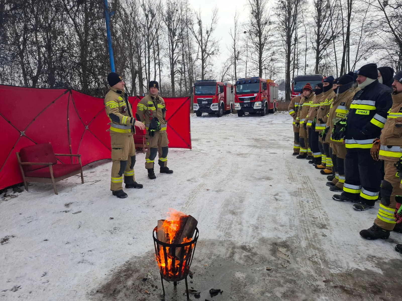 Po części szkoleniowej uczestnicy mogli ogrzać się przy ognisku, napić się ciepłej herbaty i kawy oraz zjeść ciepły posiłek, co przy temperaturze sięgającej minus 11 stopni Celsjusza miało istotne znaczenie dla komfortu i bezpieczeństwa.