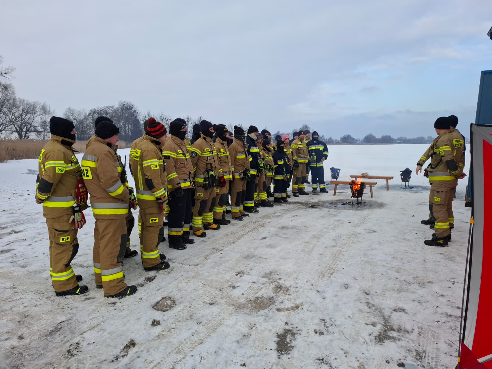 W sobotę, 31 stycznia 2026 roku korzystając ze sprzyjających warunków atmosferycznych na zamarzniętym akwenie przy Przystani Żeglarskiej Ringabulina w miejscowości Samołęż przeprowadzono ćwiczenia z zakresu ratownictwa wodno-lodowego. Szkolenie miało na celu doskonalenie umiejętności praktycznych strażaków oraz przygotowanie ich do prowadzenia działań ratowniczych na zamarzniętych zbiornikach wodnych, które w okresie zimowym stanowią szczególne zagrożenie dla życia i zdrowia ludzi.